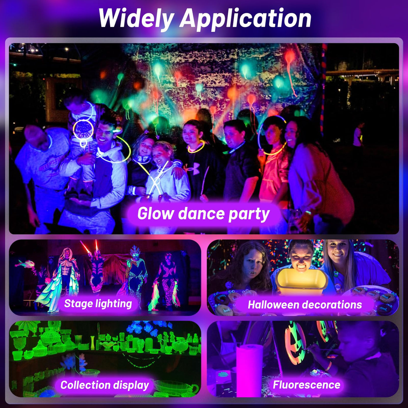 Q: Are these black lights suitable for outdoor use?A: Yes, these black lights are IP66 waterproof, which means they can withstand harsh weather conditions, making them suitable for outdoor events and decorations.