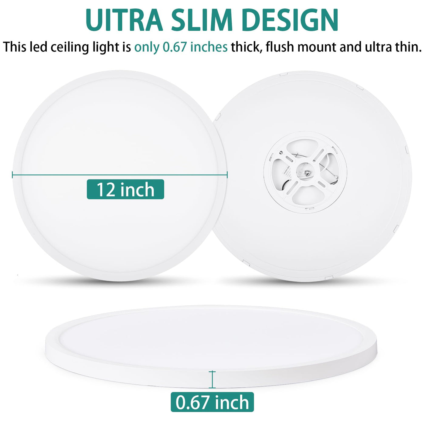 12Inch Led Ceiling Lights Flush Mount, Dimmable 3000K 4500K 6000K Cct, Low Profile Surface Mount Light Fixtures, 24W Thin Flat L
