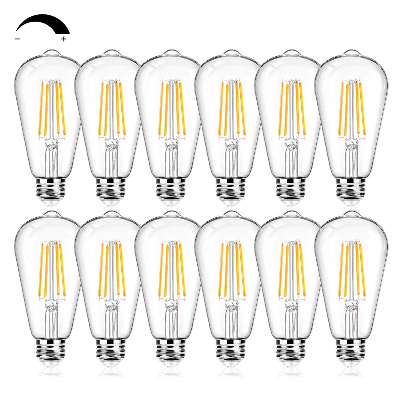 12Packs St64 Large Vintage Led Edison Bulbs, 60W Equivalent 7W, 800Lumens, Dimmable Antique Led Filament, 2700K Warm White, E26