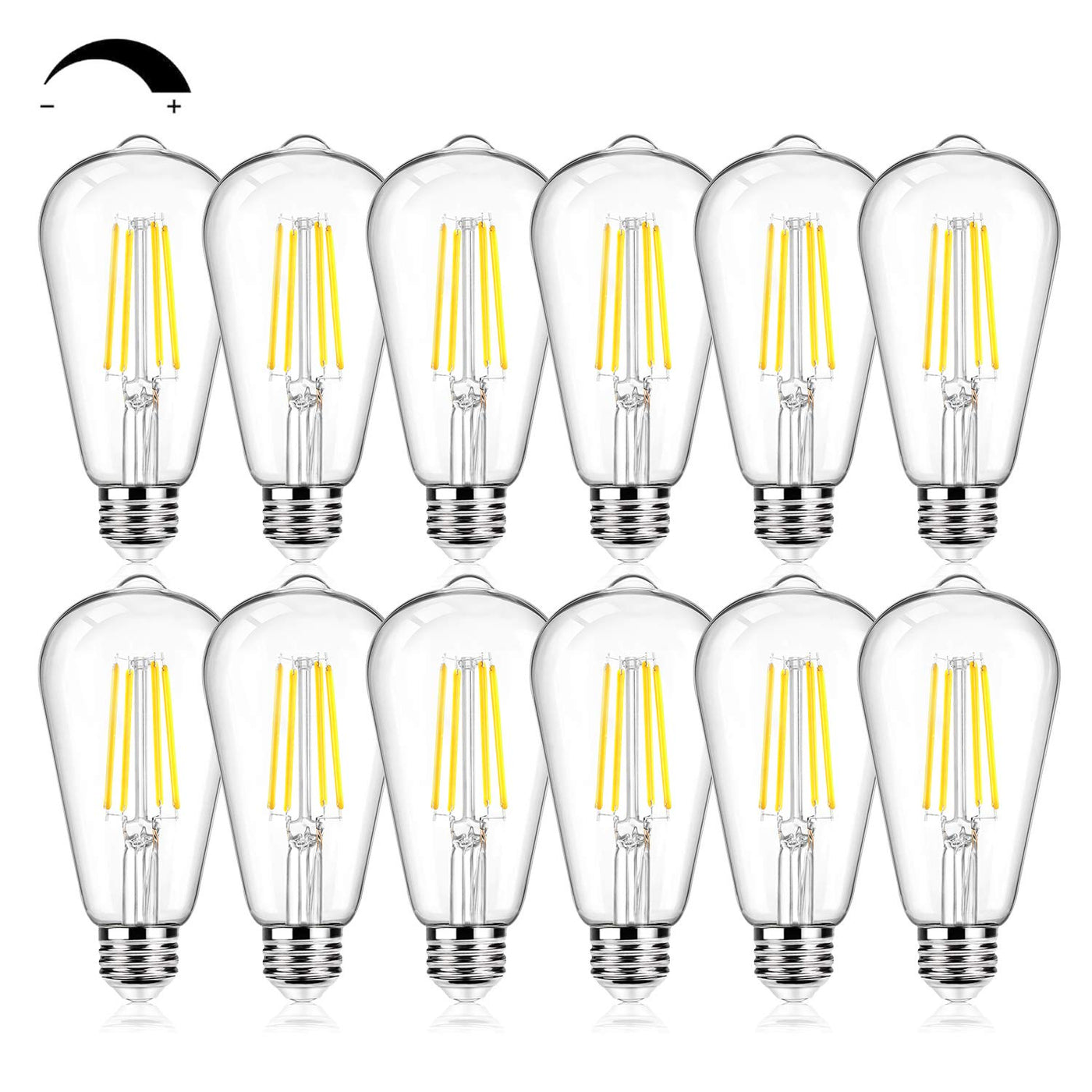 12Packs St64 Large Vintage Led Edison Bulbs, 60W Equivalent 7W, 800Lumens, Dimmable Antique Led Filament, 5000K Cool White, E26
