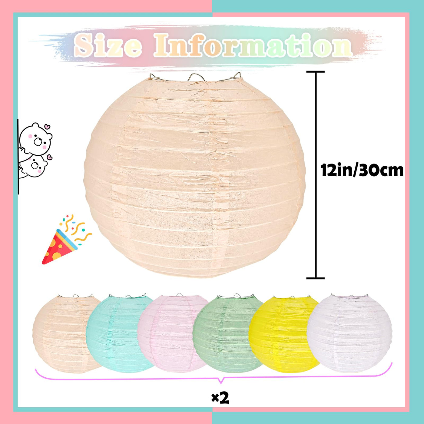 12Pcs 12'' Colorful Pastel Paper Lanterns For Spring, Classroom, Children'S Room, Mother'S Day, Baby Shower, Wedding, Birthday P