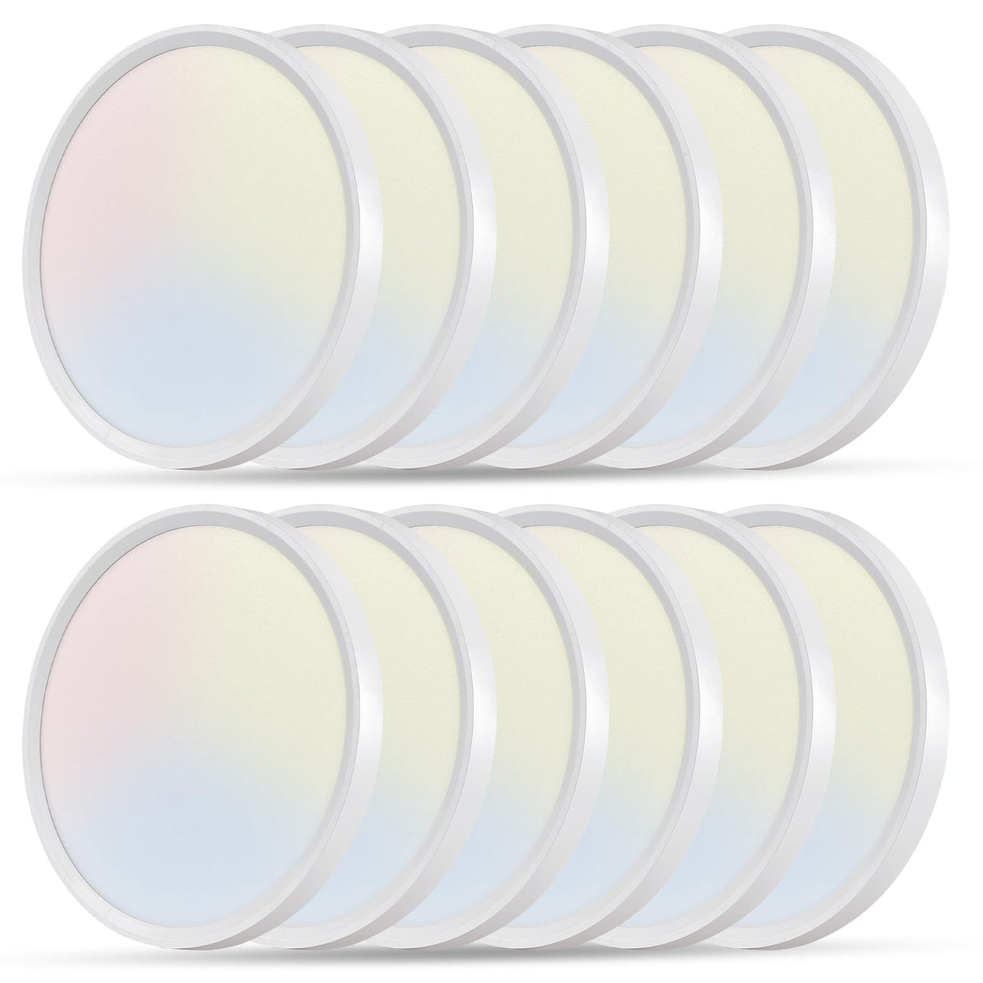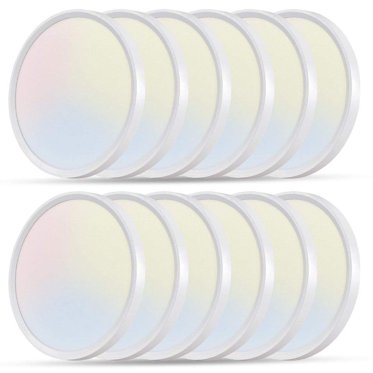 12Pk 12 Inch Led Flush Mount Ceiling Light, 24W, 2520Lm, 3000K/4000K/6000K Cct Selectable, 0.9Inch Super Slim Led Ceiling Light, Low Profile Round Flat Panel Light For Bedroom,Kitchen,Hallway