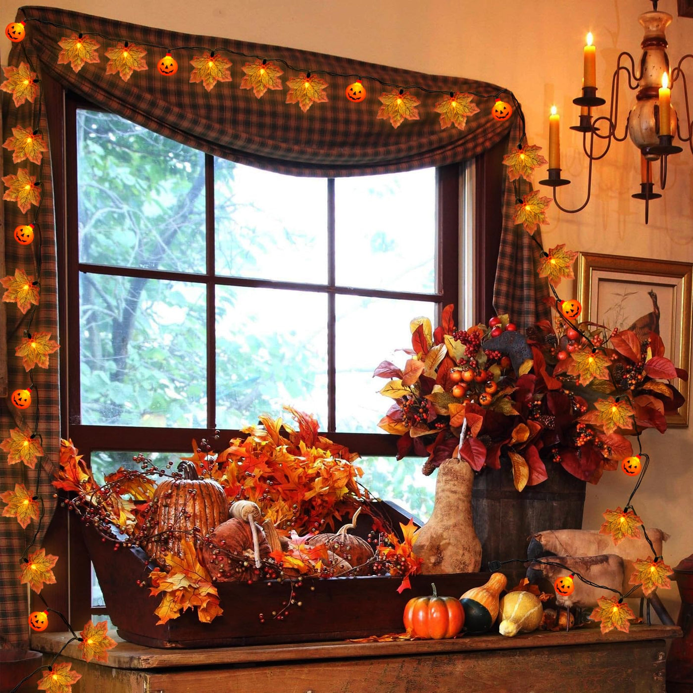 thanksgiving lightsthanksgiving decorthanksgiving decorationsthanksgiving lights indoorthanksgiving lights outdoor There are 35 led bulbs per string, with 2 additional mini LED bulbs available for replacement. UL Listed String Lights for indoor stair banisters, mantel, bedroom walls, floors, ceilings, and outdoor trees, lawn, and garden. Note : The distance between two bulbs is 4 inches. Bulb information Source Type: LED Bulb Quantity: 25 LED Orange Maple Leaf Lights + 10 LED Pumpkin Lights Bulb Life Span: 20,000 Hours Color Temperature : 2700K Bulb Watt: 0.07W per Bulb, 2.45W per String Wire information Plug Type: 2-prong plug Input Voltage : AC 120V Wire Gauge : 22AWG XTW Wire Color : Black Fuse : 4 Fuses (2 Spare) Total Length : 13.6 Feet Bulb Spacing : 4 inch Plug to first bulb : 24 inch Last bulb to end plug : 4 inch Extendable : connect up to 88 strands / 216 Watts together maximum Package Included 1*13.6FT Indoor String Lights(25 LED Orange Maple Leaf Lights + 10 LED Pumpkin Lights) 2*Spare Fuses 2*Spare Mini LED Bulbs 1*Instruction Manual Cautions 1. Please turn off the power before installation. 2. Don't touch the bulb when it's working or hot. 3.The whole string is in series, if one bulb is unplugged or one bulb was burnt out, the whole string won't be working. halloween decorations fairy lights halloween string lights autumn decor decorative lights thanksgiving lights harvest decorations indoor string lights window lights thanksgiving lights outdoor thanksgiving tree decorations thanksgiving decoration fall lights string plug in fall decorations for home thanksgiving string lights fall porch decorations outdoor fall bedroom decor fall decorations autumn decor thanksgiving decorations fall decor for bedroom fall decorations indoor thanksgiving decor thanksgiving decorations indoor autumn decorations for home leaf string lights halloween lights indoor