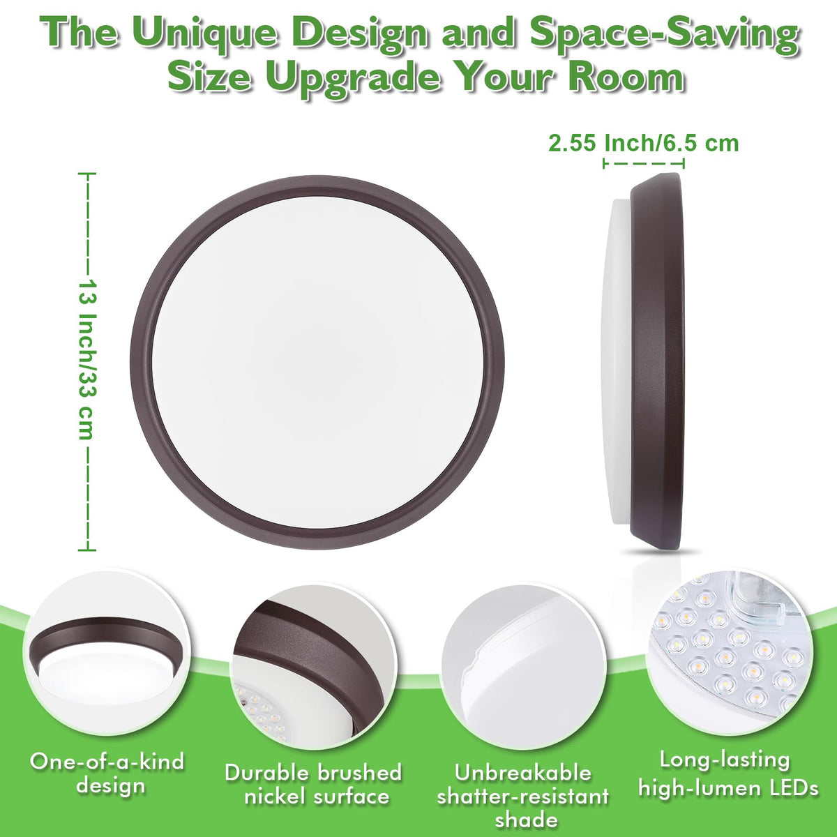 13 Inch 5Cct Flush Mount Ceiling Light Fixtures 36W 4000Lm Led Ceiling Lights For Bedroom Kitchen Bathroom Hallway 2700K/3000K/4000K/5000K/6500K Adjustable Brown Dimmable Lighting - 2 Pack