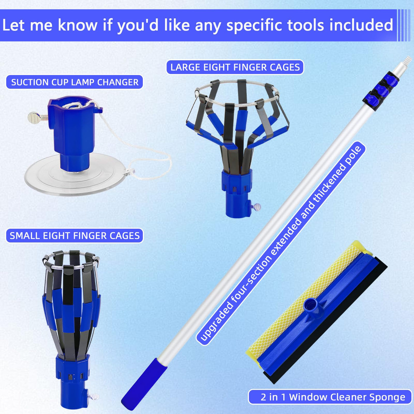 13Ft Extension Pole Light Bulb Changer With Baskets And Suction Cup - Ideal For High Ceilings And Recessed Lights - Household An
