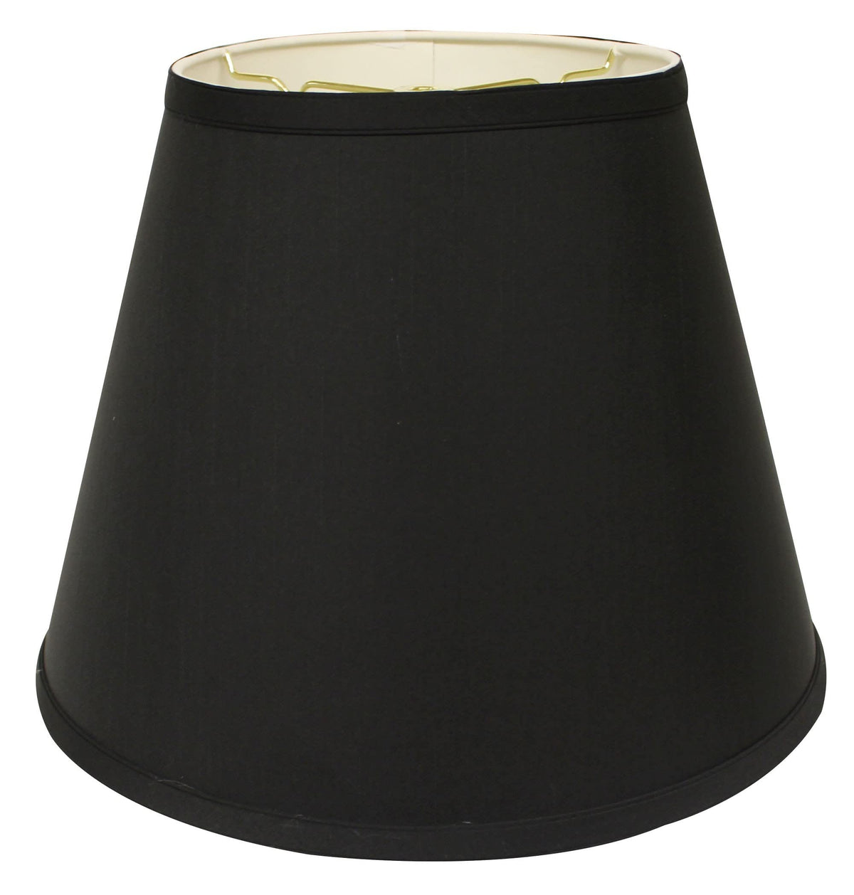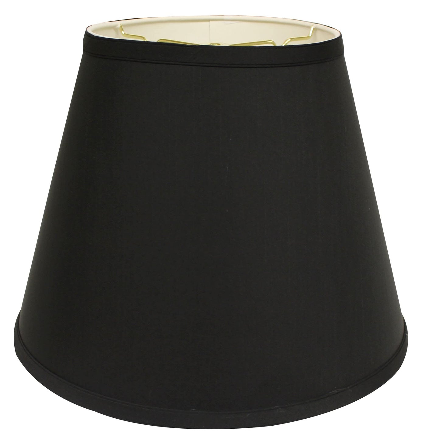 This Black with White Lining Empire Deep Slanted Shantung Lampshade has a hint of mid-century modern flair and will be a great addition to your lamp base. This hardback lampshade includes a standard washer fitter that fits over a standard harp and can be used with your existing finial design. This high quality crafted drum shape has a slight slant to give it some visual interest and is crafted of the finest shantung with a fold on top and bottom of the shade. 11'' x 14'' x 14''