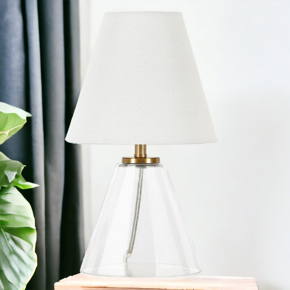 14'' Clear Glass Geometric Table Lamp With White Drum Shade