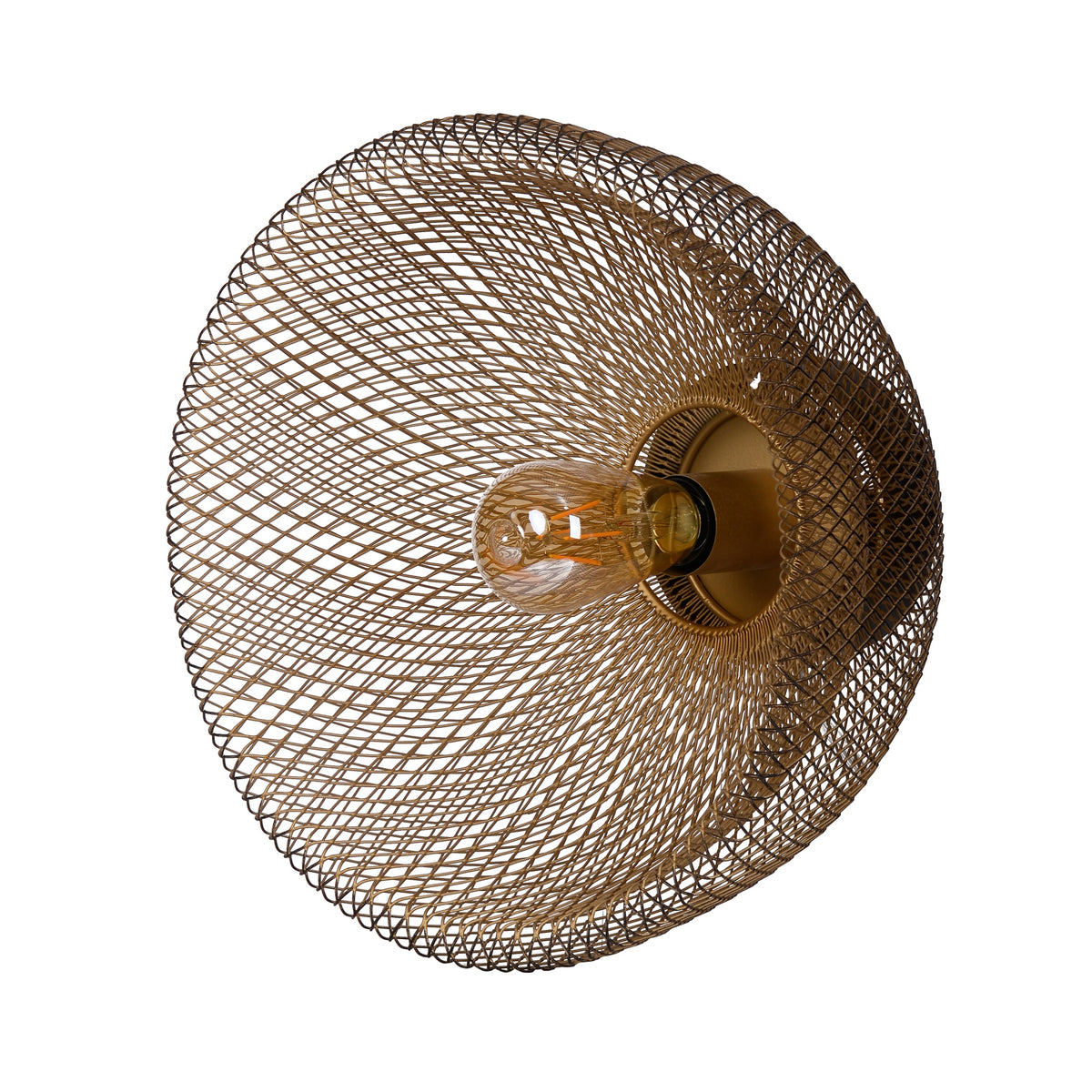 14 Inch Round Wall Mounted Lamp, Iron Mesh and Hardware, Gold Finished