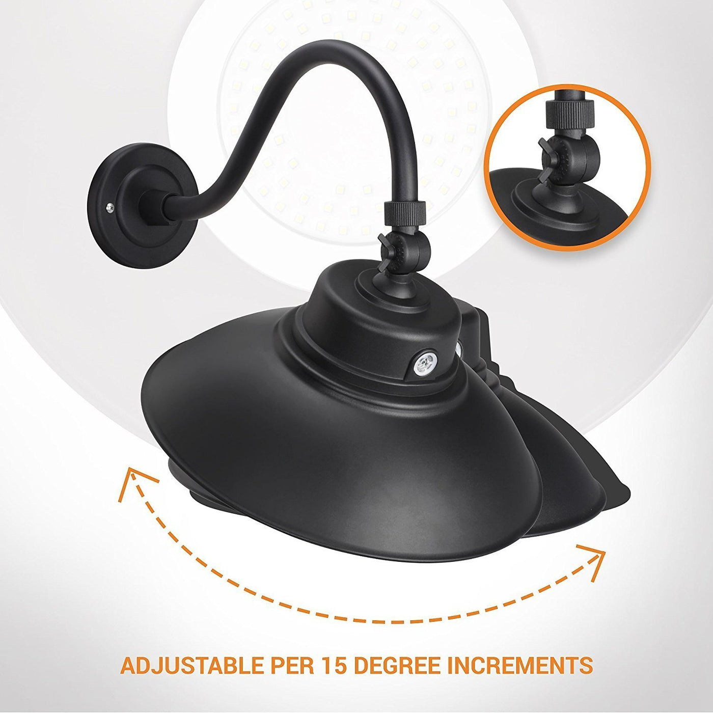14in. Black Gooseneck Barn Light LED Fixture for Indoor/Outdoor Use - Photocell Included - Swivel Head - 42W - 3800lm - Energy S
