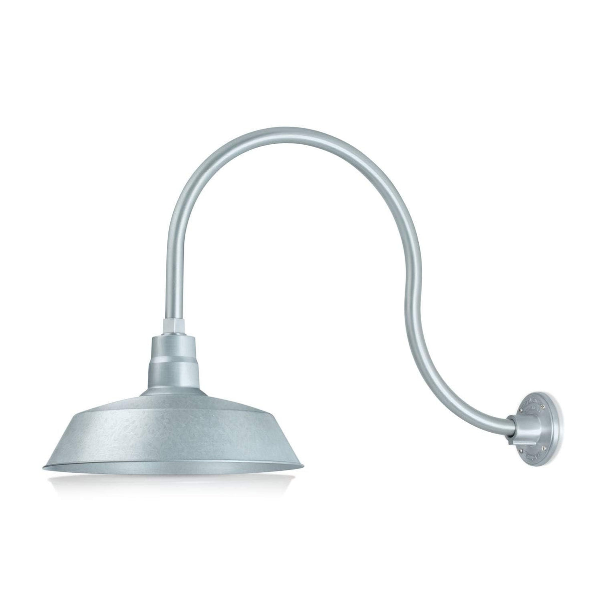 14In. Galvanized Finish Outdoor Gooseneck Barn Light Fixture With 24In. Long Extension Arm - Wall Sconce Farmhouse, Vintage, Ant