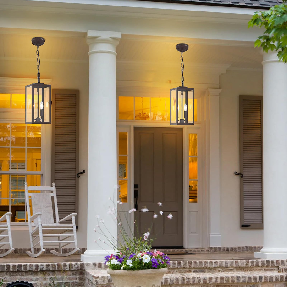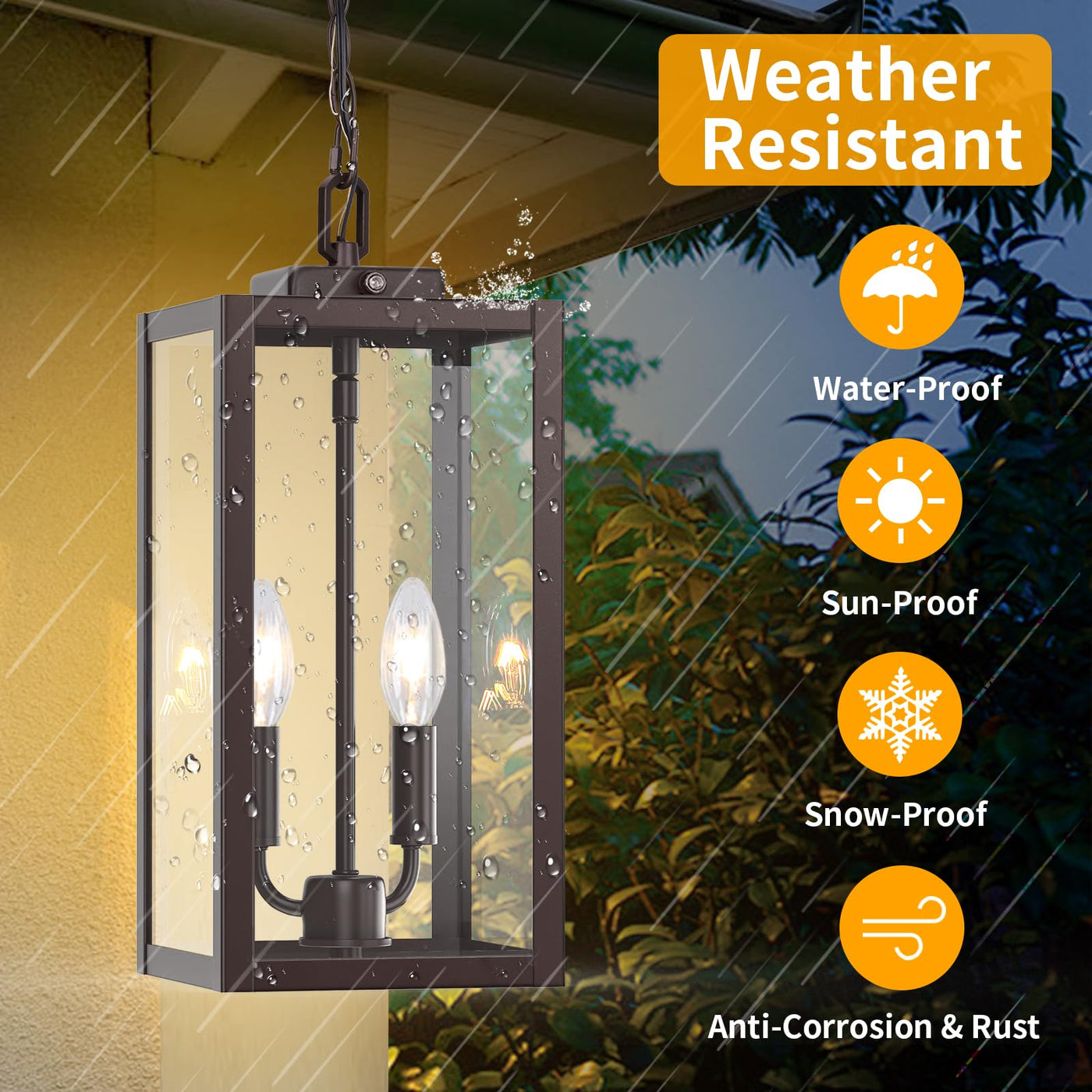 Q: Is this outdoor pendant light suitable for different decor styles?A: Yes, the modern brown finish and clear glass design of this hanging light complement various decor styles, including industrial and farmhouse themes, allowing your personal style to shine.