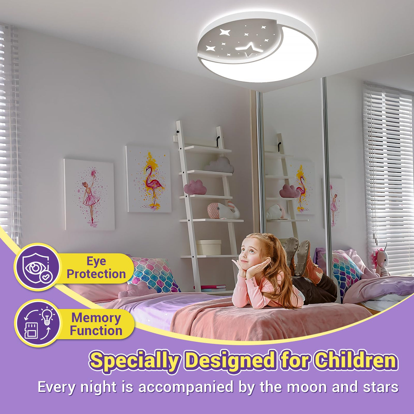 Q: Can this ceiling light be used in other rooms besides children's bedrooms?A: Absolutely! While it is designed for children's rooms, the versatile design and adjustable lighting modes make it suitable for living rooms, playrooms, and other areas in the home.