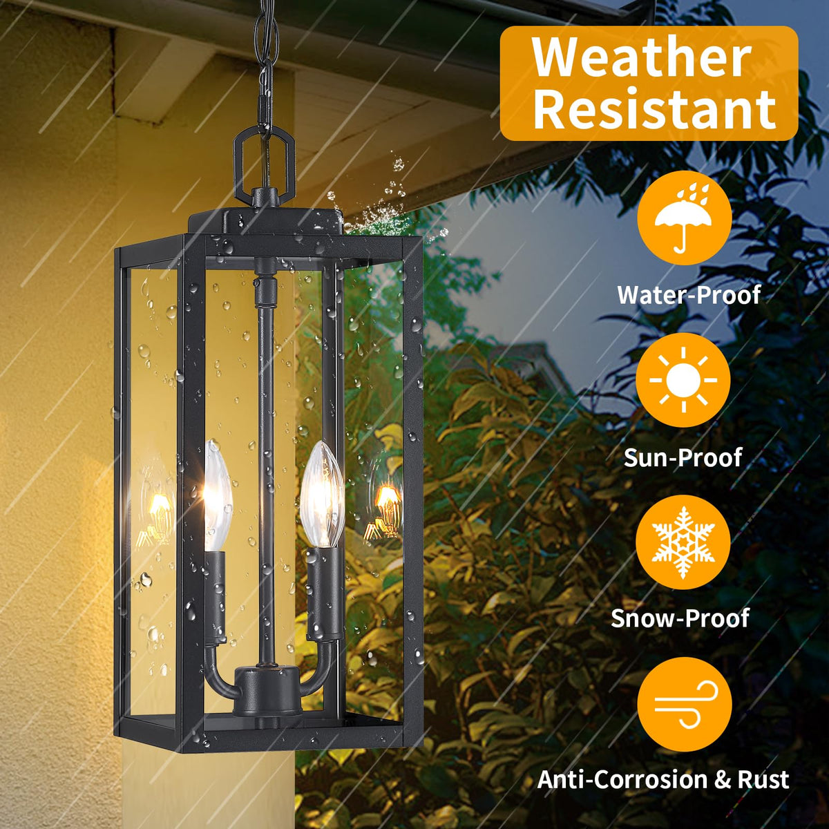 Q: Is the outdoor pendant light suitable for wet or humid environments?A: Yes, the outdoor pendant light is designed to be waterproof, anti-rustic, and weather-resistant, making it suitable for wet or humid environments.