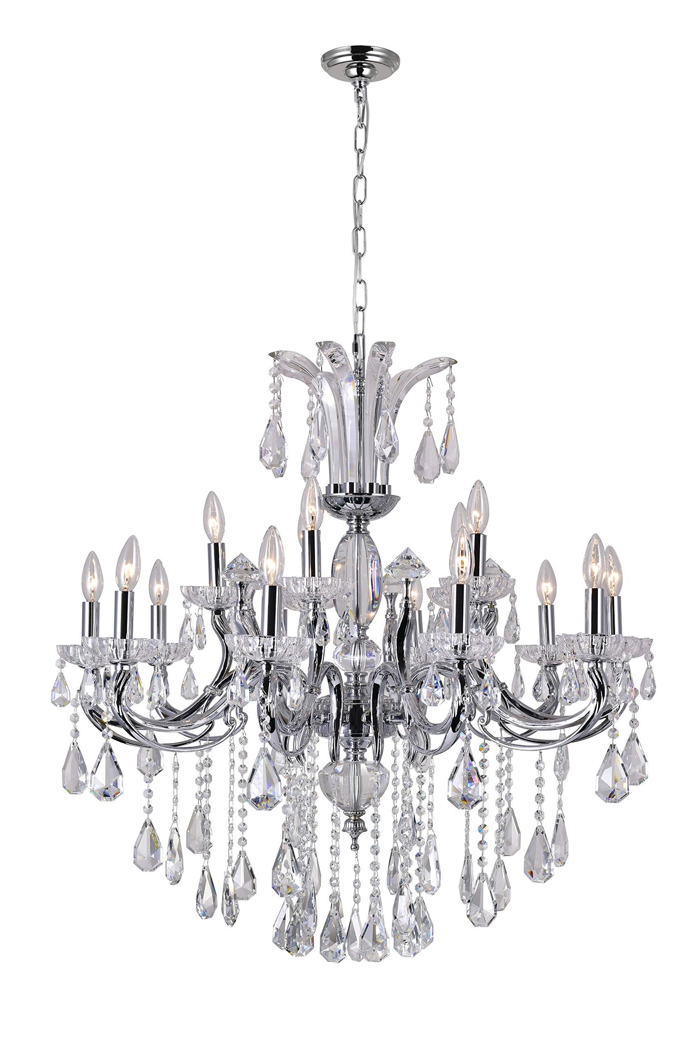This breathtaking 15 Light Up Chandelier with Chrome finish is a beautiful piece from our Glorious Collection. With its sophisticated beauty and stunning details, it is sure to add the perfect touch to your decor.