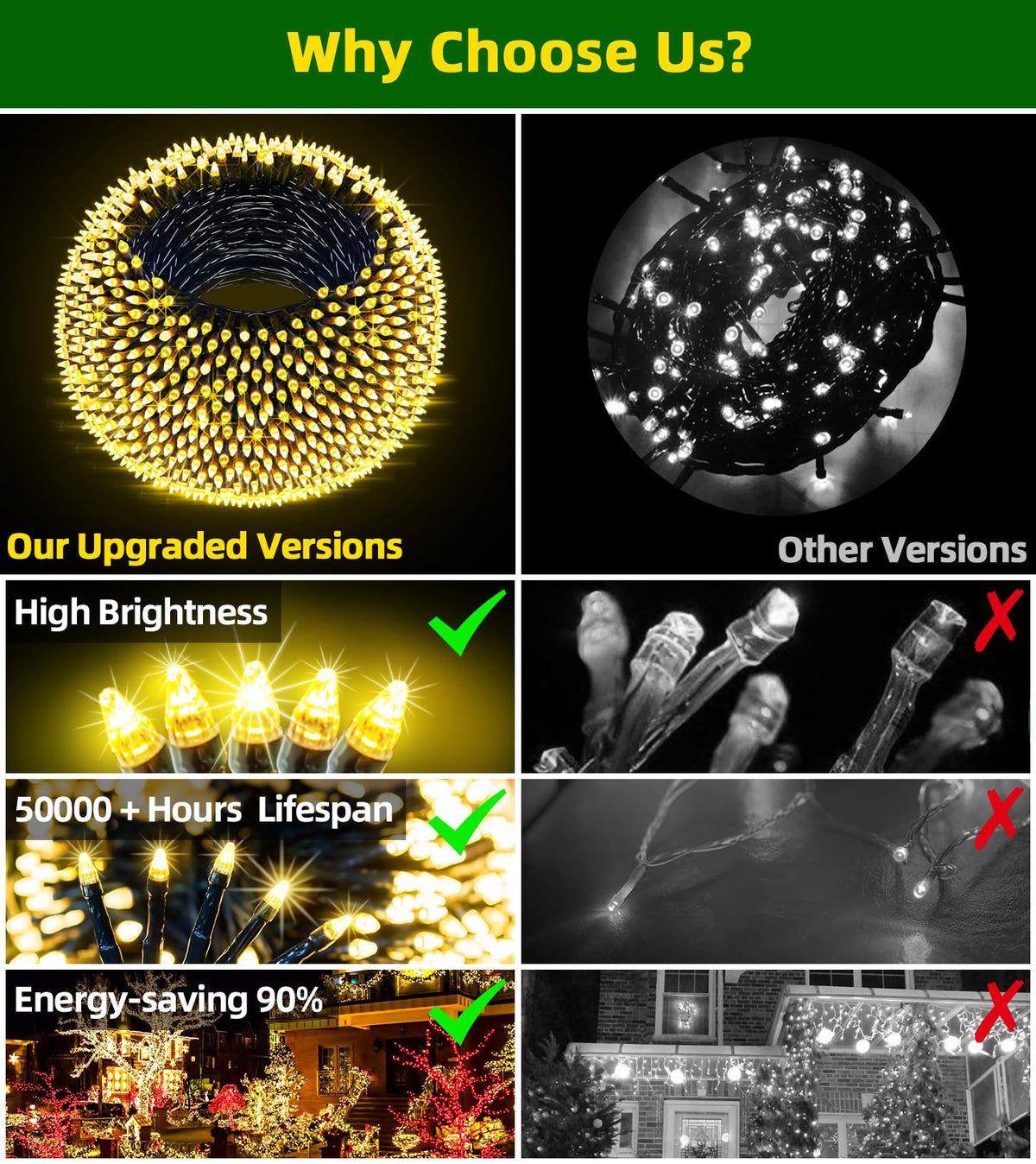Perfect For Large Homes: Tired Of Connecting Multiple Strands? This 470Ft 1500 Led Warm White Outdoor Christmas String Lights On Dark Green Wire Is Long Enough To Wrap Your Garage, Windows, Roofline, Porches, And Even 15–20Ft Christmas Trees. One Continuous Strand Creates A Cozy, Timeless Glow That Makes Your Entire Home Feel Inviting, Elegant, And Effortlessly Festive.