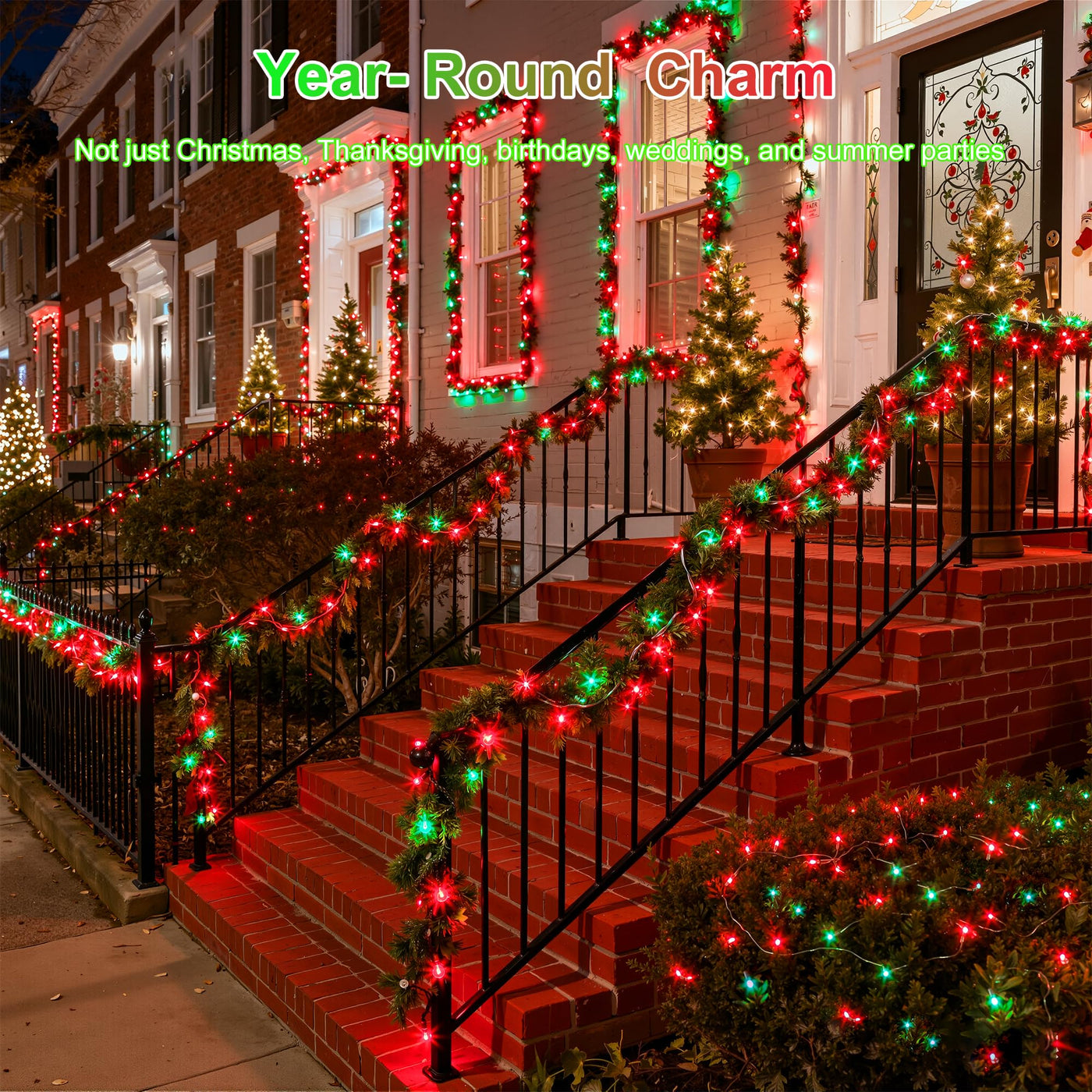 1500Led Christmas Lights Outdoor Use 470Ft 12 Modes Red And Green Led String Lights With Timer Dimmable Waterproof Christmas Tree Lights For Xmas Patio Yard Fence Balcony Garden Party Decor