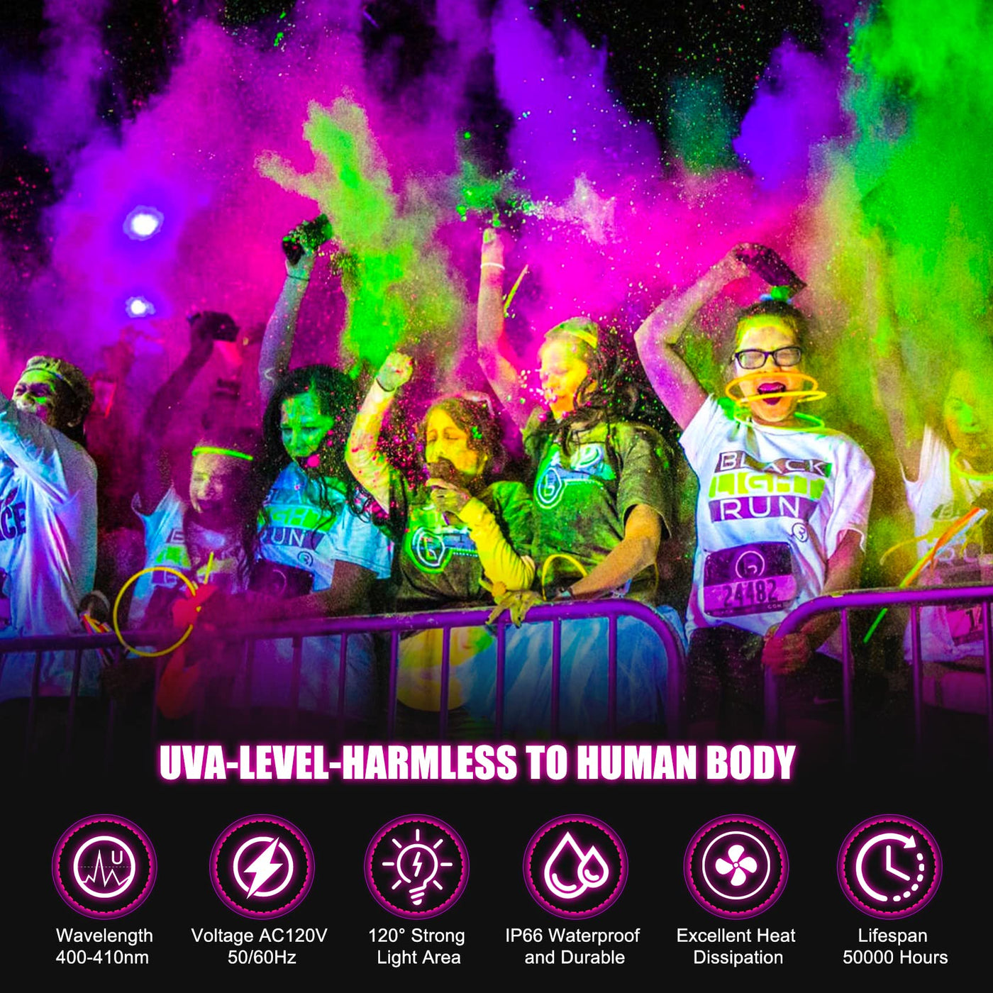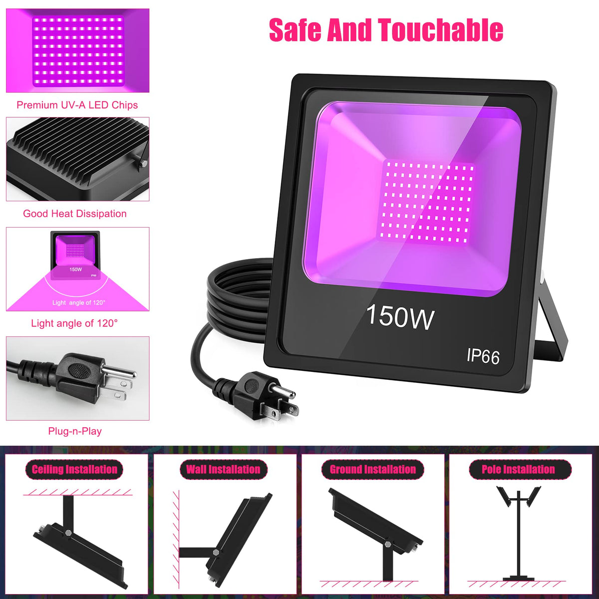 150W Black Light for Christmas Decorations, 2 Pack UV Flood Light with Plug(10ft Cable), IP66 Waterproof Blacklights with Fluore