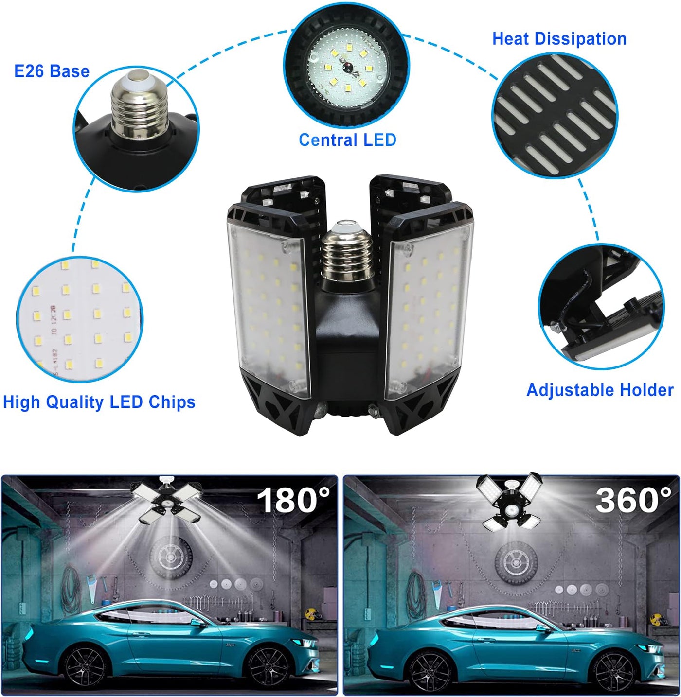 150W Led Garage Light - 15000 Lumen Ceiling Light With 4+1 Adjustable Panels Daylight Led Shop Light Bulb Fixture For Garage Workshop