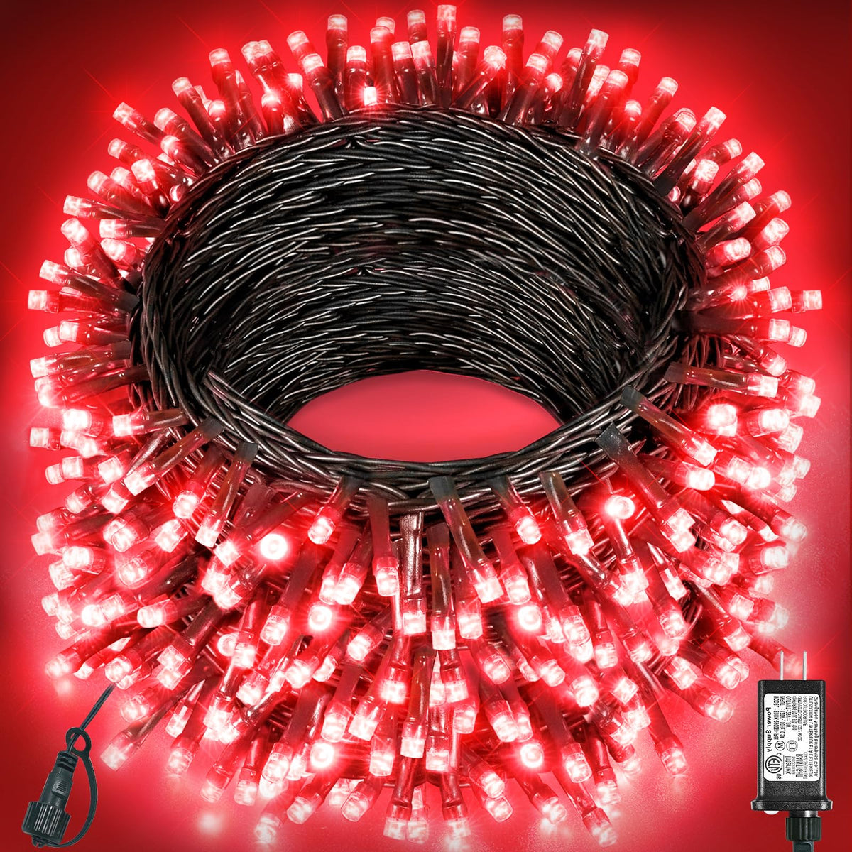 157Ft 480 Led Christmas Lights Outdoor Led Plug In Christmas Tree Lights Waterproof 8 Modes Green Wire Twinkle String Light For Indoor Room Patio House Holiday Decorations Red