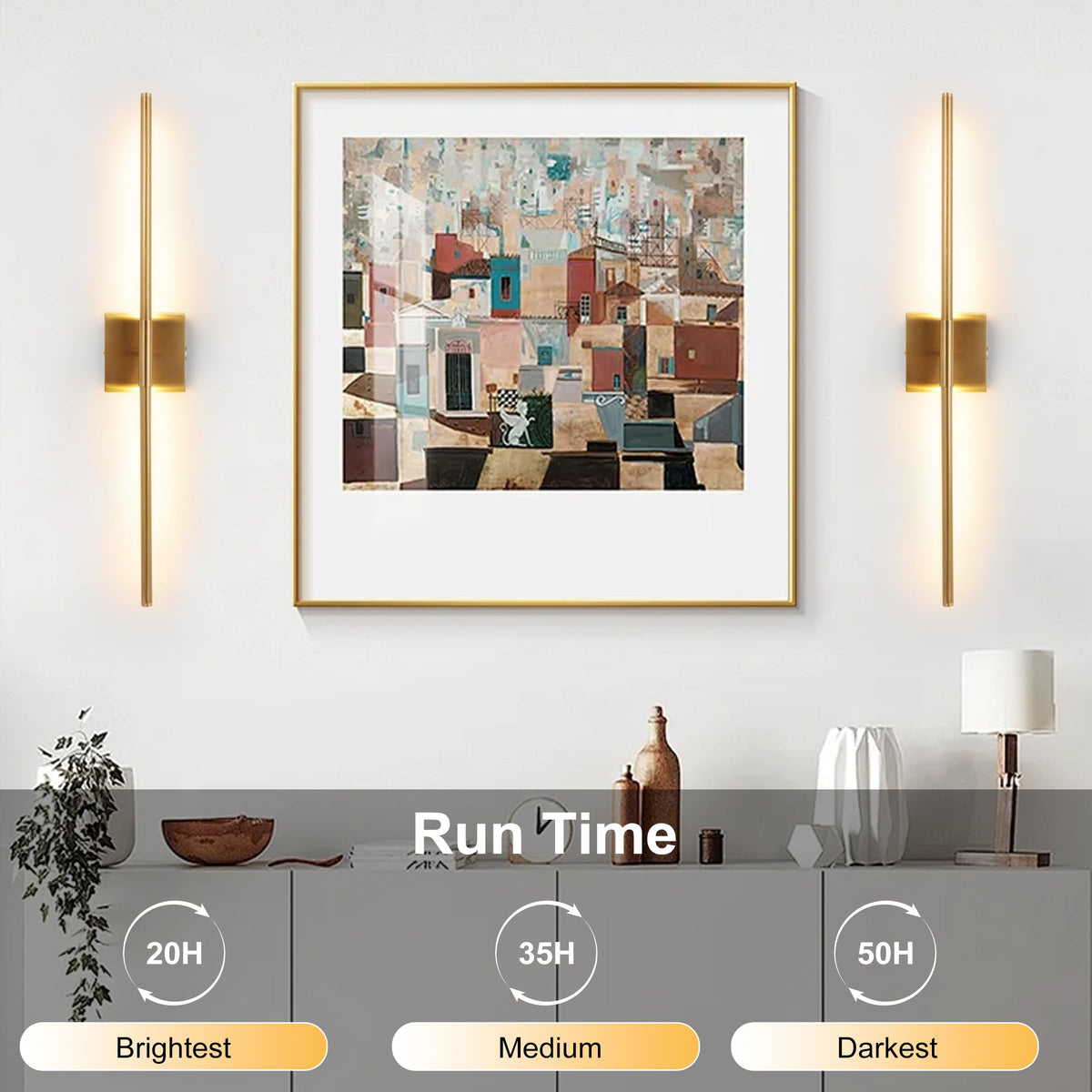 15800 mAh Battery Operated Wall Sconce with Remote Control Dimmable Wall Sconce Set of Two 3000K LED Brass Gold Wireless Wall Li