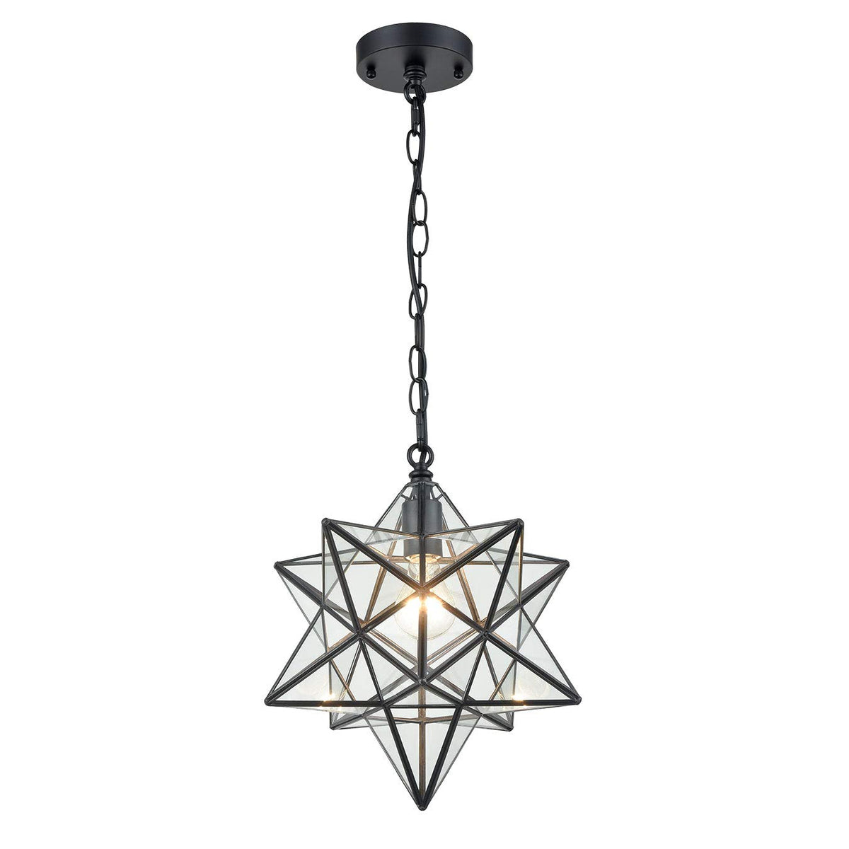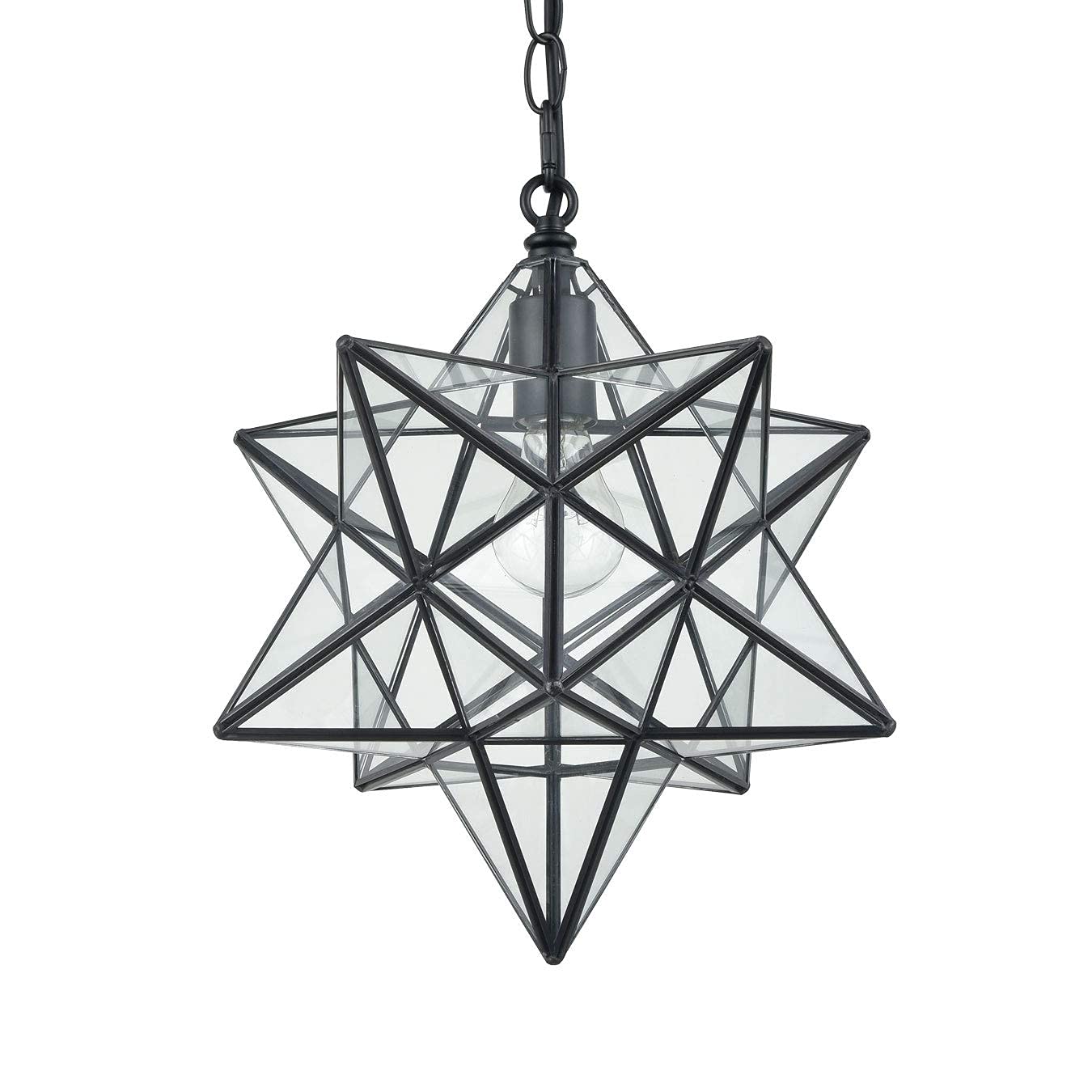 Moravian Star Clear Glass Pendant Lightvoltage: 110V-120V Wattage: 60W Base Type: E26 Light Source: Led Bulbs Or Incandescent Shade Type: Black Copper, Clear Glass Note: Light Source Not Included Light Diameter: Approx. 16'' Material: Iron, Porcelain Socket, Copper, Glass