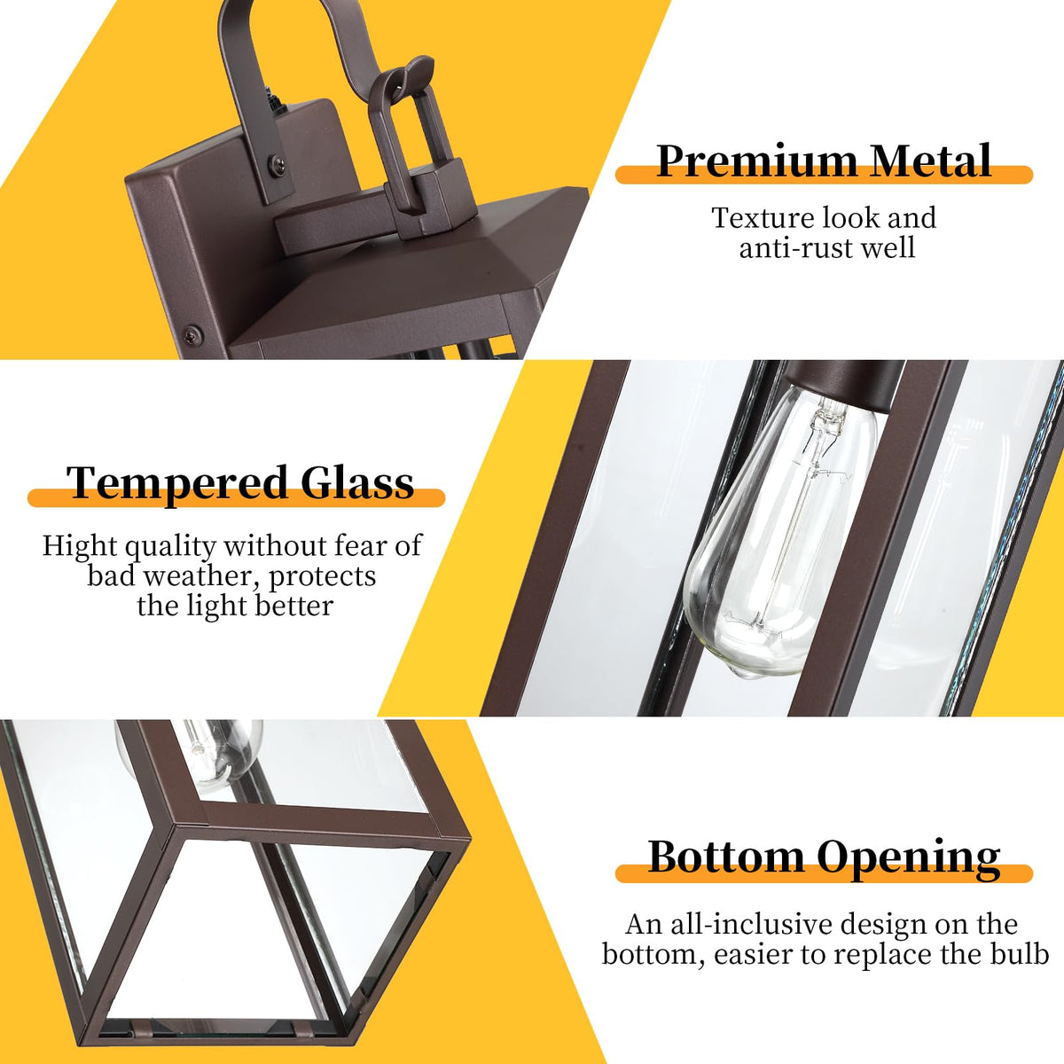 16'' Large Outdoor Wall Lights 2-Packs, Dusk To Dawn Modern Brown Exterior Lighting Fixtures, Outdoor Sconces Porch Light For Ho