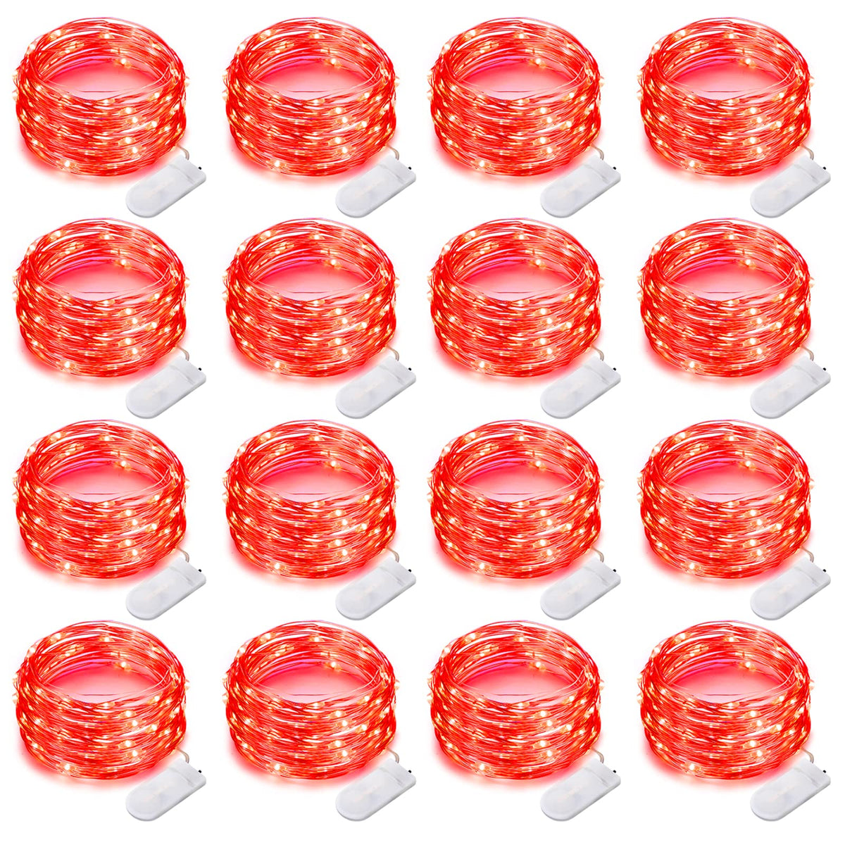 16 Pack 30 Led Fairy Lights Battery Operated String Lights 10 Feet Waterproof Twinkle Lights Mason Jar Lights Silver Wire Firefly Lights For Christmas Red