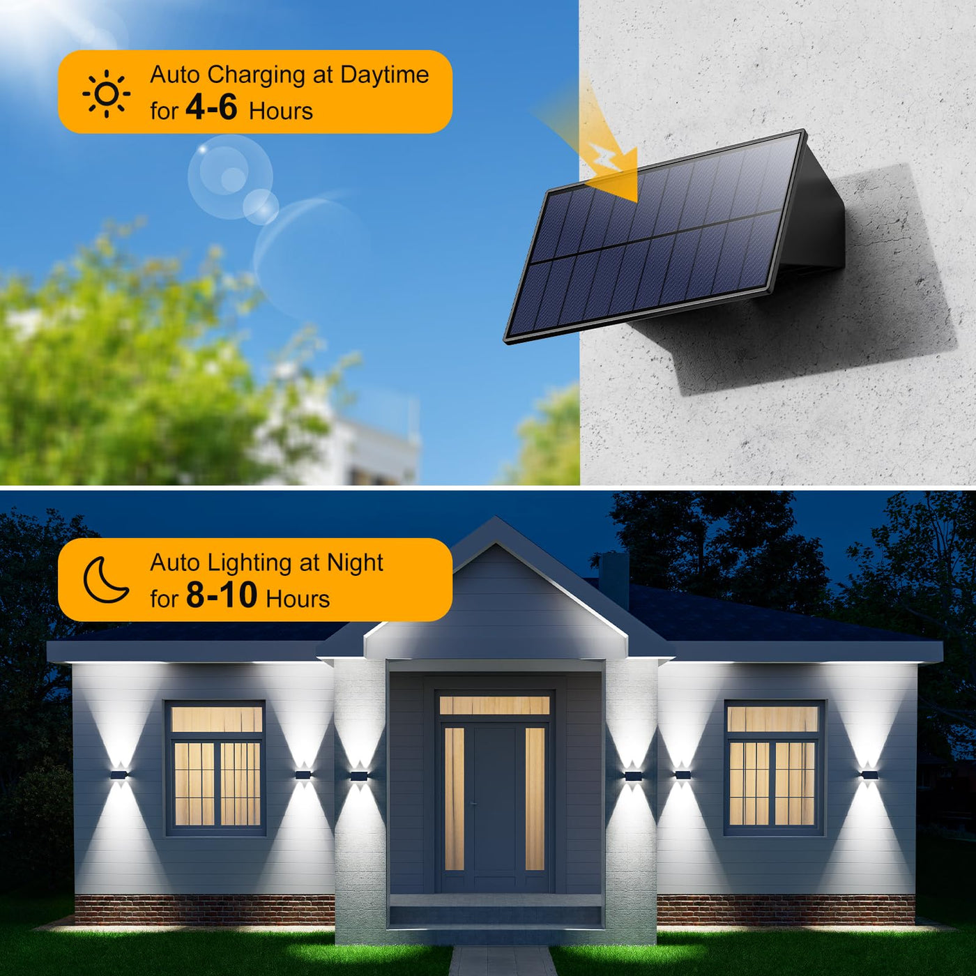 These Affordable Solar Fence Lights Outdoor Waterproof Come In A Pack Of Four And Will Create A Gorgeous Glow In Any Countyard Or Garden. Outdoor Step Lights For Yard Solar Powered Is The Best Option When You Need Extra Brightness For Your Outdoor Areas. Each Solar Wall Lights Outdoor Emits About 80-120 Lumens Of Brightness, 6000K Cool White Light From Its Four Led Chips. The Solar Outdoor Deck Lights Dusk To Dawn Decorative The Fence And Wall With Up And Down Lighting, Making Your Exterior House Or Backyard More Security And Attractive. Burn Time Is Up To 10 Hours On A Single Charge Of 5-6 Hours.With Fence Post Lights Outdoor Solar Powered, You Wont Have To Worry About Them Not Working As They Run On Energy Gathered From Sunlight. The Solar Up Down Lights Outdoor Waterproof Absorb Solar Energy In The Daytime, Convert The Power To The Built-In 2200Mah Battery, Turning On Themselves Automatically At Night. Two Brightness Options Is Great Solar Power Fence Lights Outdoor Waterproof To Brighten Your Fence, Wall, Porch, Patio, Deck, Step, Garden, Pool, Yard Etc.With An Waterproof Rating Of Ip65, The 16 Pack Led Solar Lights Up And Down Are More Than Ready To Get You Through The Most Severe Weather - Wet, Dry, Freezing Or Torrential.With No Wiring Required, These Dawn To Dusk Outdoor Wall Light Decorative Are The Ultimate Low-Maintenance Exterior Lighting. Simply Attach Solar Up And Down Lights To Your Tall Fence Or Wall And Let The Sun Do The Rest.