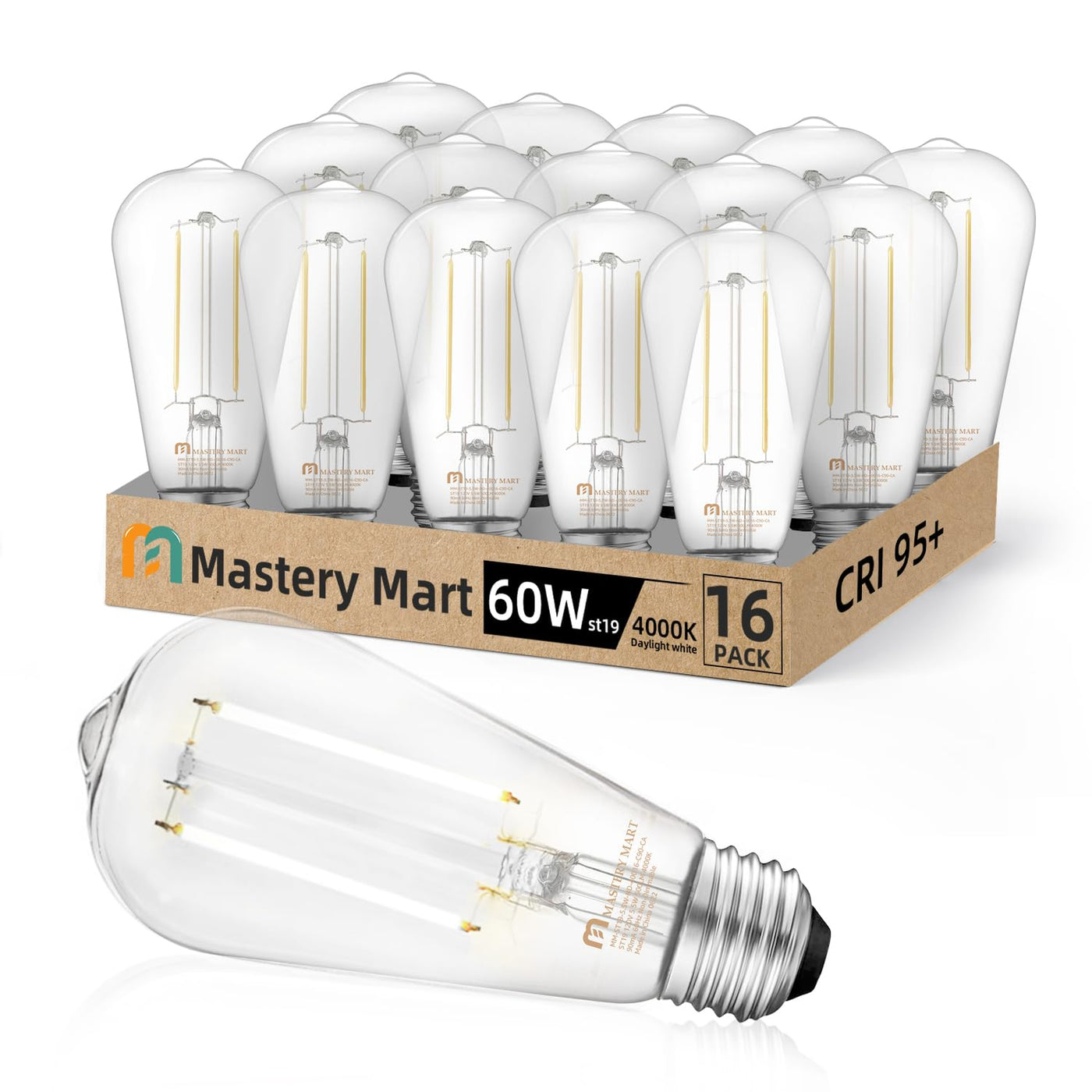 St58 Antique Led Filament Bulbs With 90+ Cri, E26 Medium Base, Non-Dimmable, Clear Glass, 16-Packs Of Vintage Led Edison Bulbs 60W Equivalent