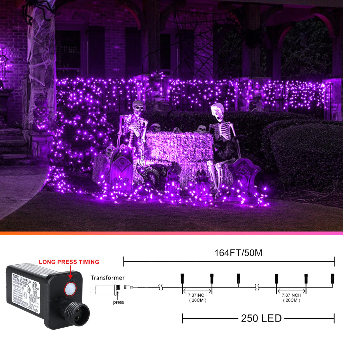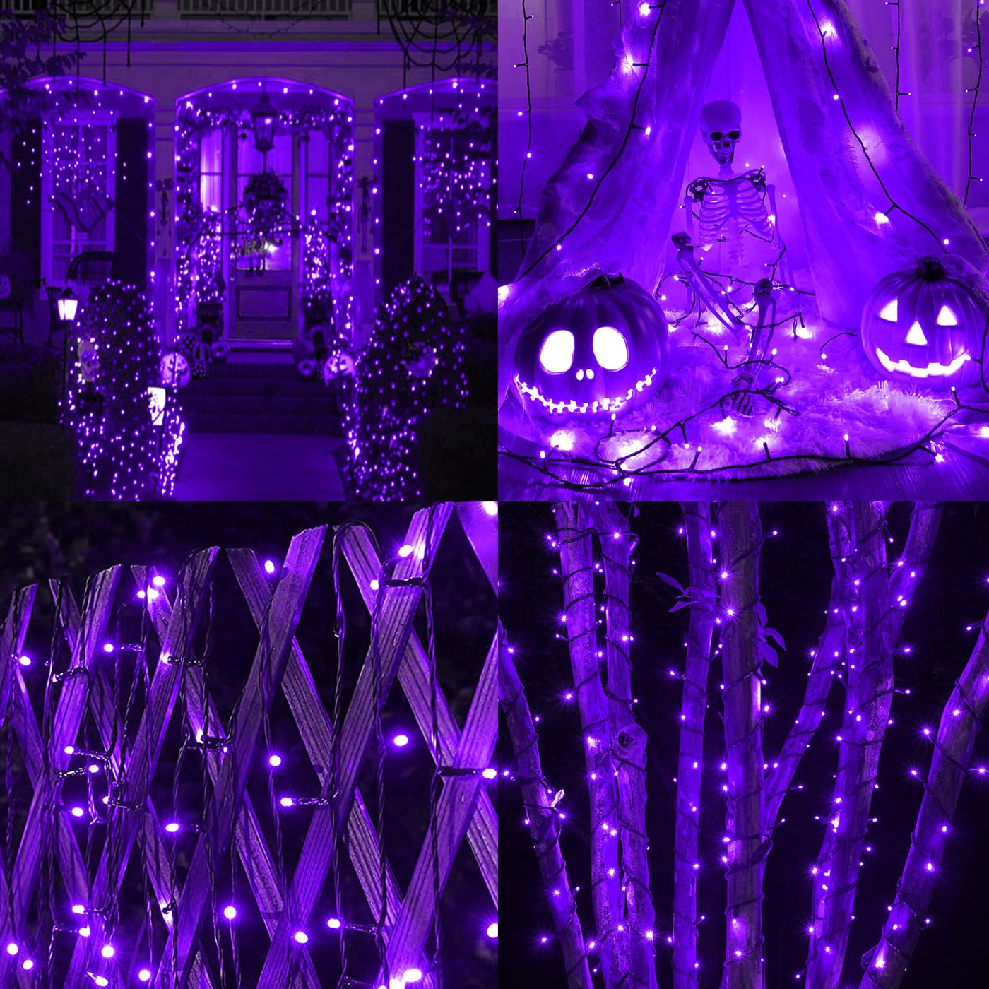 Q: Are these lights suitable for outdoor use?A: Yes, the 164 FT 250 LED Purple Christmas Lights are designed to be waterproof, making them ideal for both indoor and outdoor decorations for events like Halloween, parties, and festive gatherings.