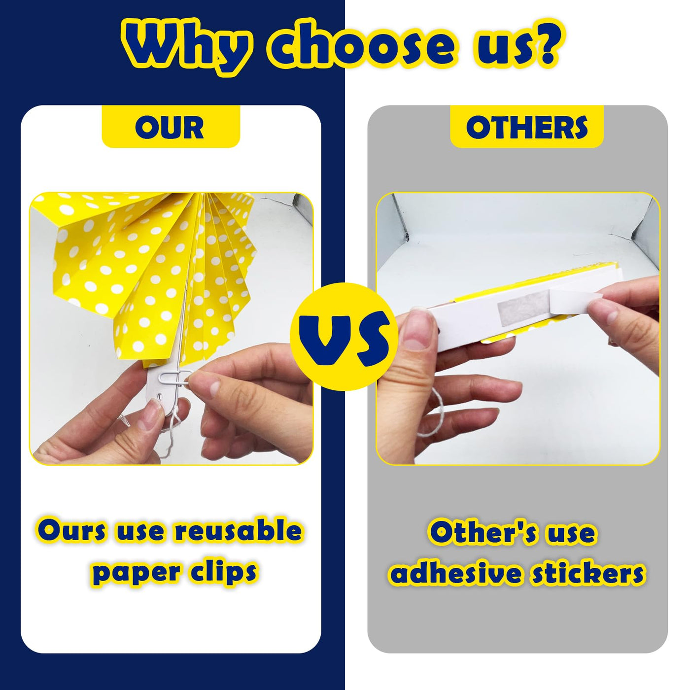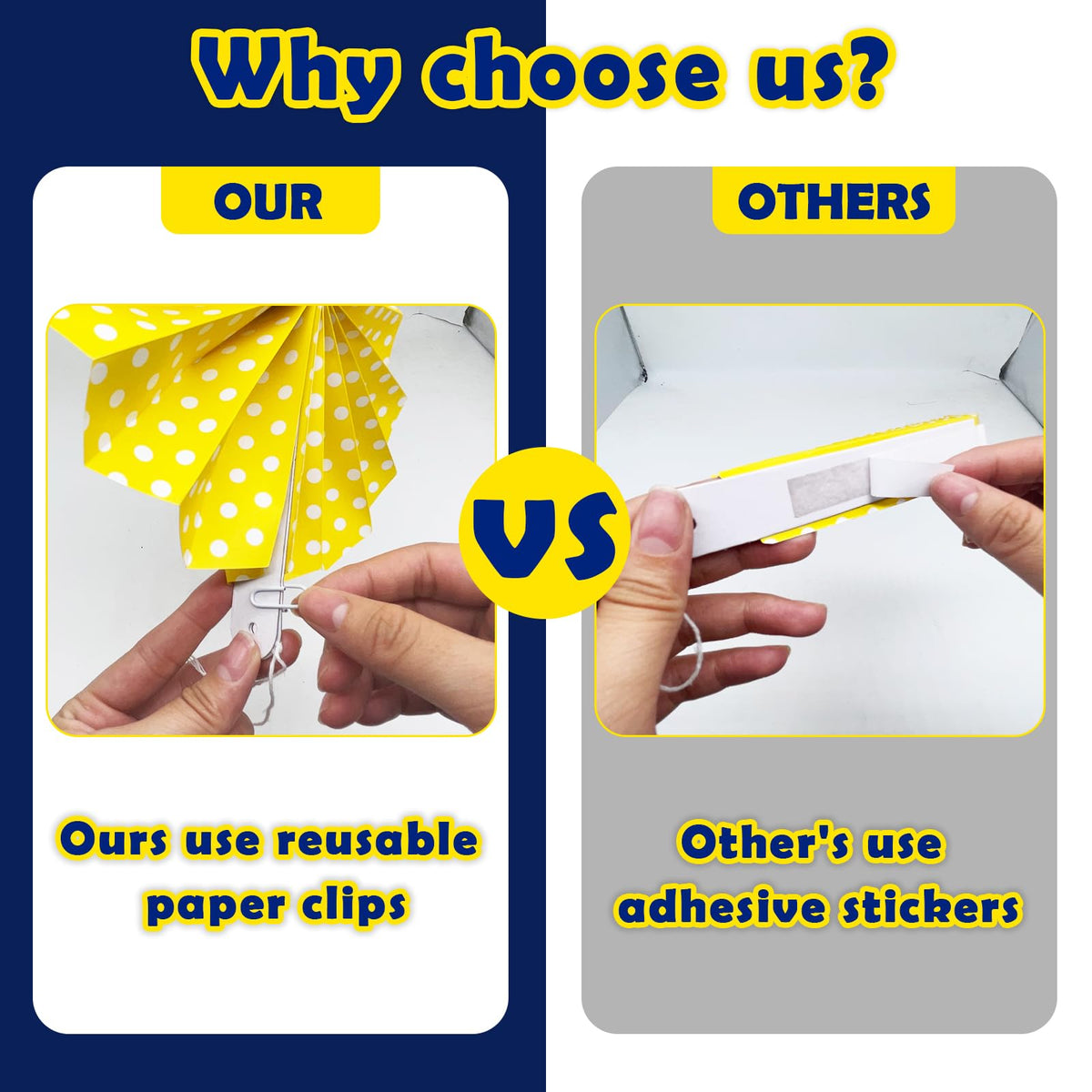 Q: Are these decorations eco-friendly?A: Yes, these navy blue and yellow decorations are more environmentally friendly than traditional balloons. They are made of quality paper and can be reused multiple times if stored properly, reducing waste.