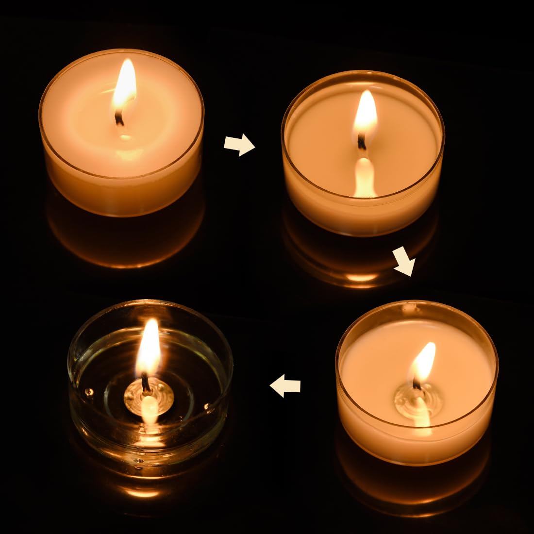 Q: How long do these beeswax tealight candles burn?A: Each tealight candle in this set burns for more than 4 hours, allowing you to enjoy extended use without the need for frequent replacements.