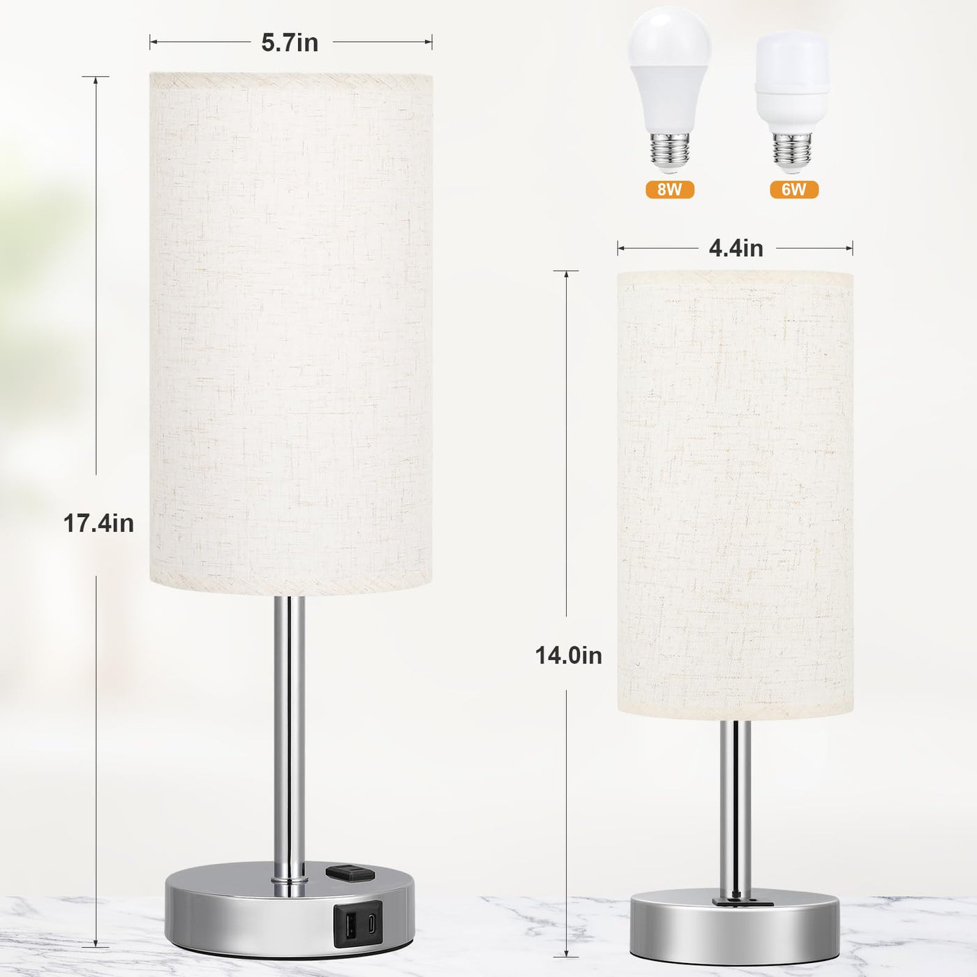 17.4Inch Bedside Touch Table Lamps For Bedroom Nightstand With Usb-C Usb-A Charging Ports White - 3 Way Dimmable Control Small L