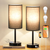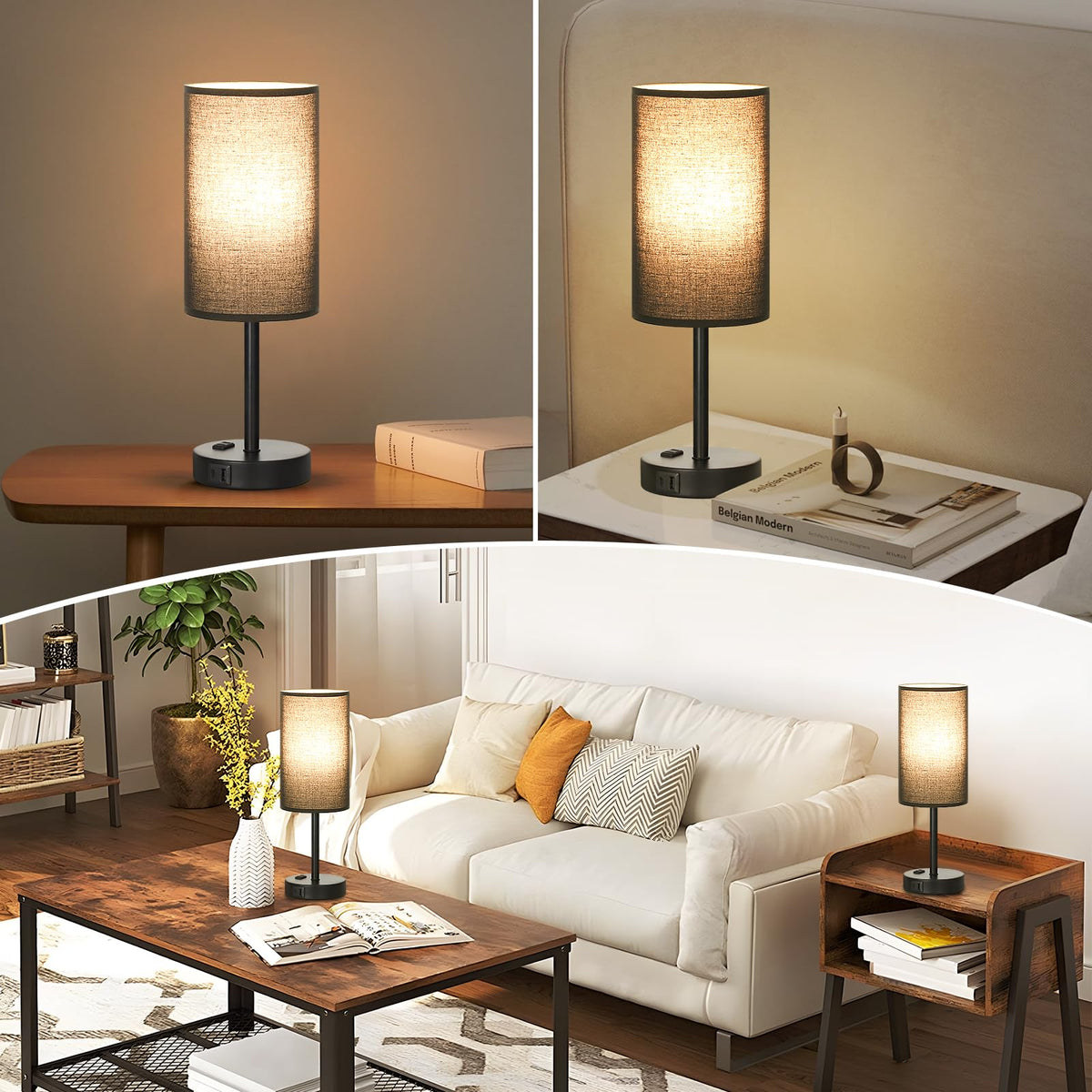 17.4Inches Tall Black Touch Table Lamps Set - 3 Way Dimmable Bedside Lamps With Usb C And A Ports, Small Lamps For Nightstand Wi