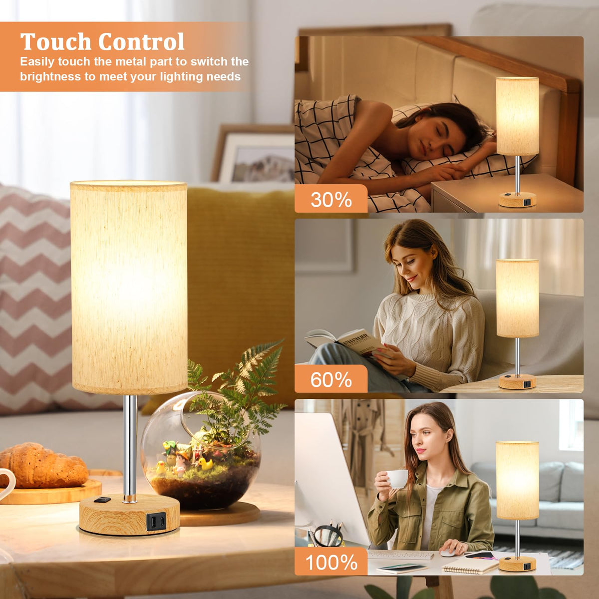 17.4Inches Tall Touch Bedside Table Lamps Set - 3 Way Dimmable Bedroom Lamp With Usb C Ports, Small Desk Lamps For Nightstand Wi