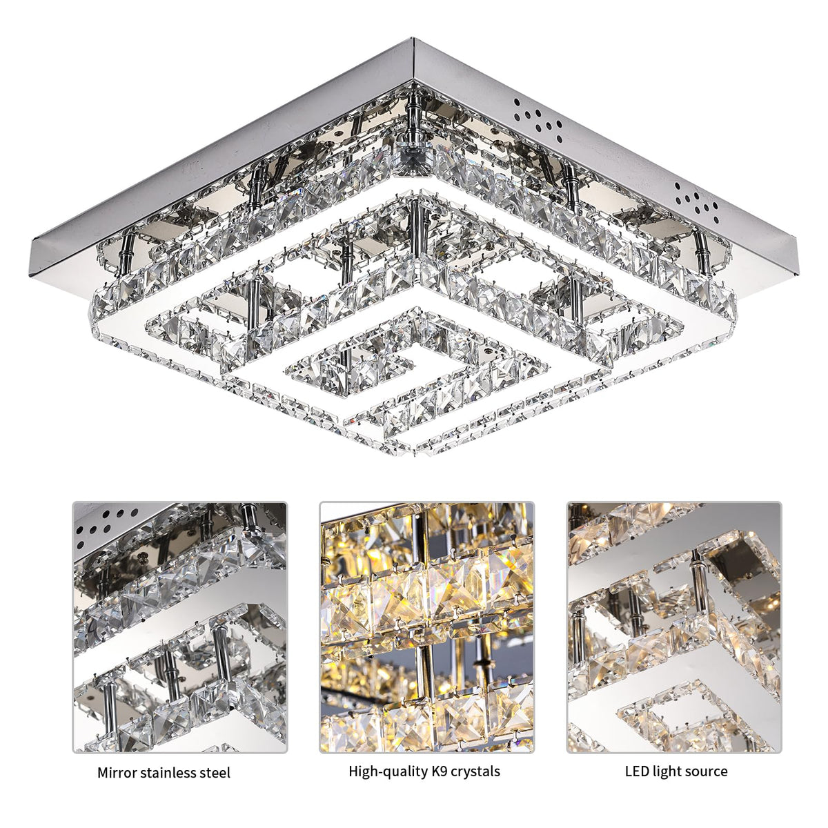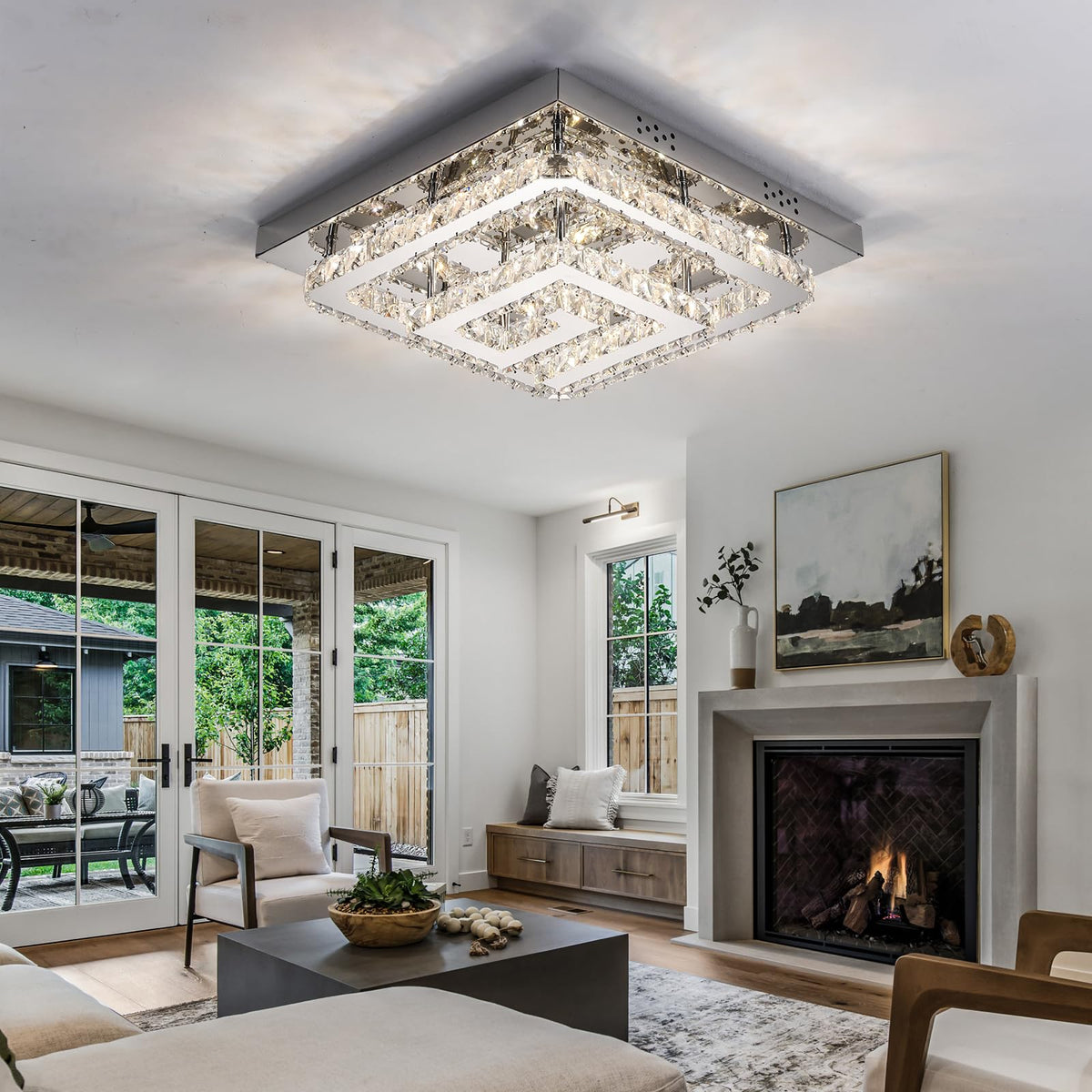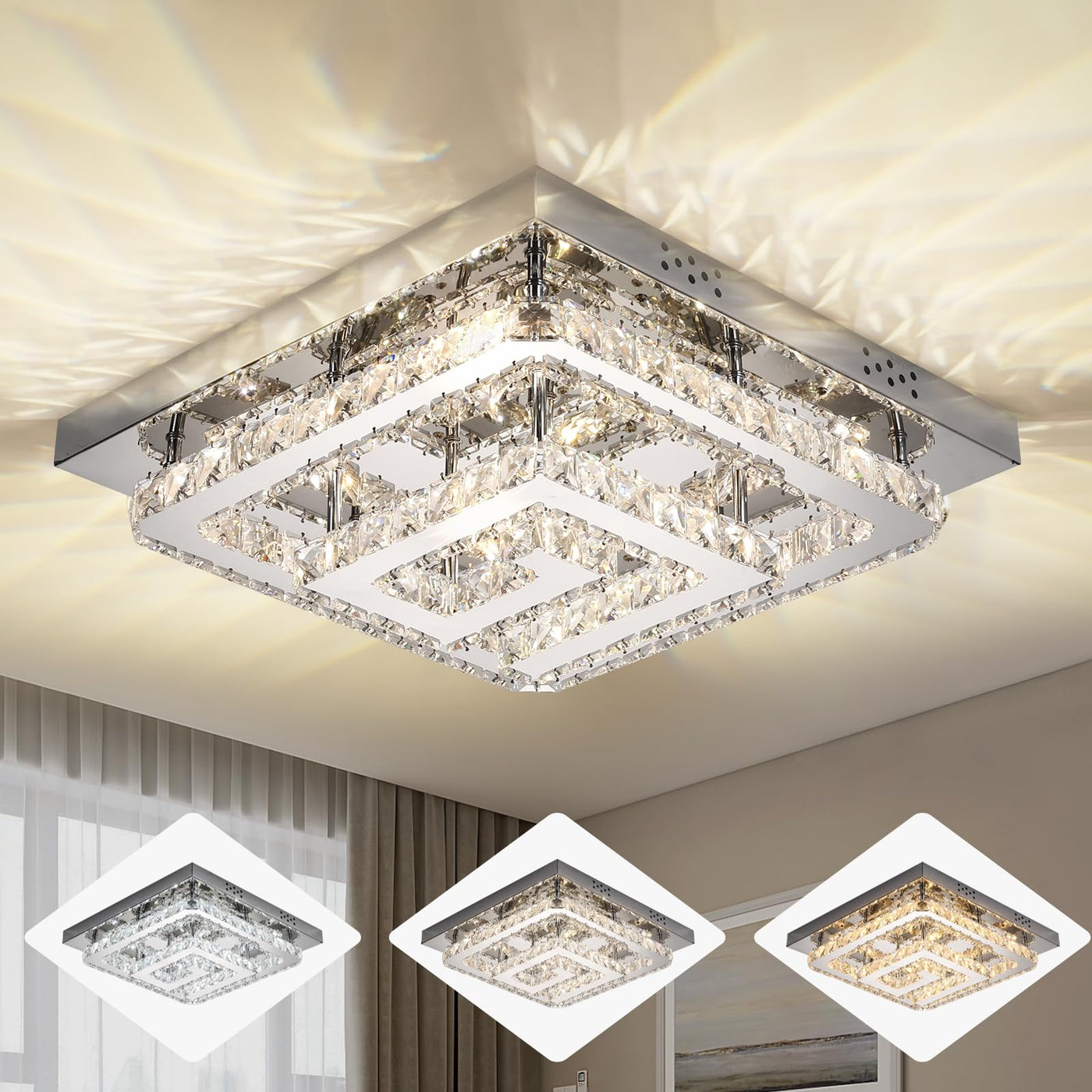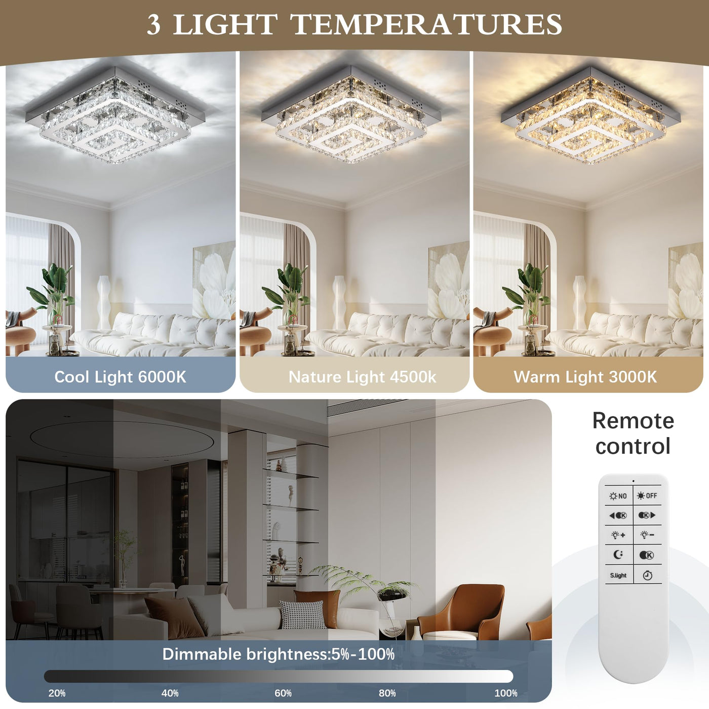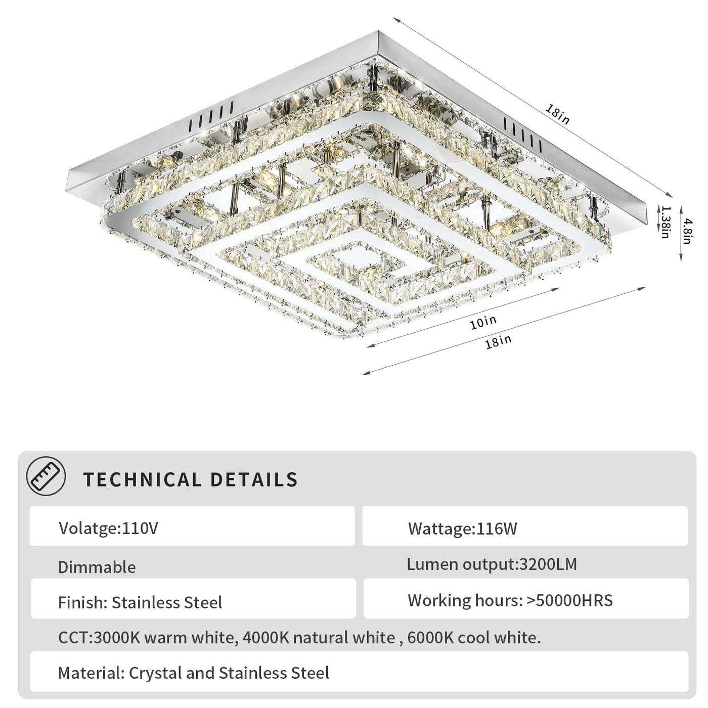 Sophisticated Crystal Flush Mount Light - Elevate Your Home with Style and Function Bring a touch of modern elegance to your home with our 18'' x 10''H Crystal Flush Mount Light. Featuring a stunning two-layer LED design, each layer delivers a powerful 45W output, providing bright, even lighting while maintaining a sleek, low-profile look. The polished 18'' x 1.57''H canopy and 10'' lamp height create a perfect balance of contemporary style and timeless sophistication. Tailored Lighting for Every Occasion Set the mood in any room with just a flip of a switch! Choose from three customizable color temperatures-3000K warm white for a relaxing ambiance, 4000K natural white for everyday clarity, and 6000K cool white for a vibrant, energizing feel. The included remote control lets you adjust both brightness and color temperature, so you can create the perfect atmosphere to match your decor or mood. Durable, Energy-Saving Design Built to impress and endure, this fixture combines premium K9 crystals with rust-resistant stainless steel for a luxurious yet durable finish. The energy-efficient LED technology not only reduces your energy bills but also ensures long-lasting performance with minimal maintenance. Perfect for Any Room From the living room to the bedroom, kitchen, or even the balcony, this versatile crystal light fixture enhances any space with its modern, luxurious appeal. Its adaptable design fits seamlessly into hallways, dining rooms, walk-in closets, and more, making it a stylish addition to any home. Easy Setup, Exceptional Support Installation is simple and stress-free! All components are clearly labeled, and the step-by-step guide makes it easy to assemble and mount. If you need assistance, our friendly customer support team is available 24/7 to help you every step of the way. Upgrade your home with this exquisite crystal flush mount light-where cutting-edge design meets everyday practicality, and every detail shines with perfection.