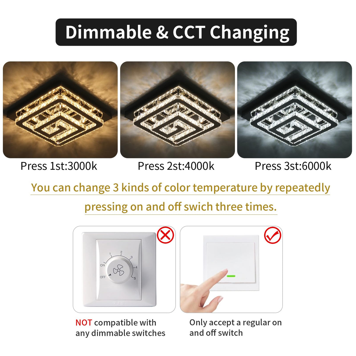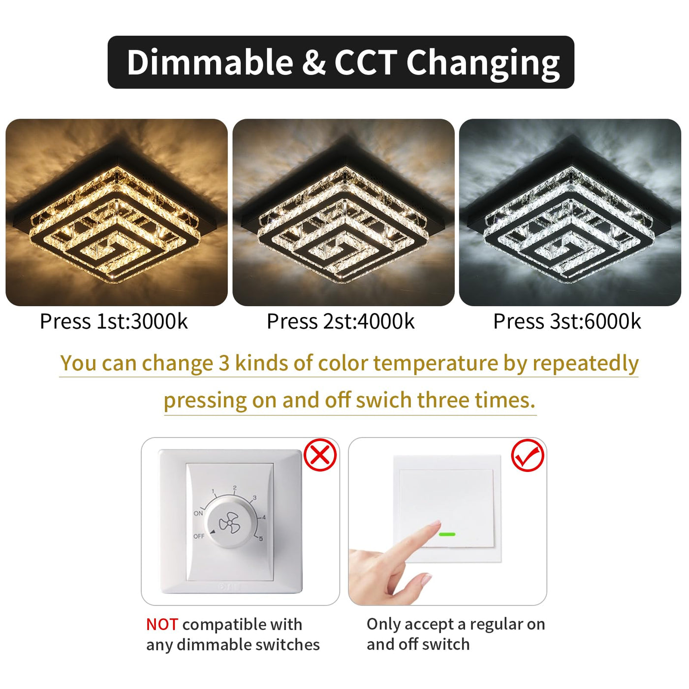 Sophisticated Crystal Flush Mount Light - Elevate Your Home With Style And Function Bring A Touch Of Modern Elegance To Your Home With Our 18'' X 10''H Crystal Flush Mount Light. Featuring A Stunning Two-Layer Led Design, Each Layer Delivers A Powerful 45W Output, Providing Bright, Even Lighting While Maintaining A Sleek, Low-Profile Look. The Polished 18'' X 1.57''H Canopy And 10'' Lamp Height Create A Perfect Balance Of Contemporary Style And Timeless Sophistication. Tailored Lighting For Every Occasion Set The Mood In Any Room With Just A Flip Of A Switch! Choose From Three Customizable Color Temperatures-3000K Warm White For A Relaxing Ambiance, 4000K Natural White For Everyday Clarity, And 6000K Cool White For A Vibrant, Energizing Feel. The Included Remote Control Lets You Adjust Both Brightness And Color Temperature, So You Can Create The Perfect Atmosphere To Match Your Decor Or Mood. Durable, Energy-Saving Design Built To Impress And Endure, This Fixture Combines Premium K9 Crystals With Rust-Resistant Stainless Steel For A Luxurious Yet Durable Finish. The Energy-Efficient Led Technology Not Only Reduces Your Energy Bills But Also Ensures Long-Lasting Performance With Minimal Maintenance. Perfect For Any Room From The Living Room To The Bedroom, Kitchen, Or Even The Balcony, This Versatile Crystal Light Fixture Enhances Any Space With Its Modern, Luxurious Appeal. Its Adaptable Design Fits Seamlessly Into Hallways, Dining Rooms, Walk-In Closets, And More, Making It A Stylish Addition To Any Home. Easy Setup, Exceptional Support Installation Is Simple And Stress-Free! All Components Are Clearly Labeled, And The Step-By-Step Guide Makes It Easy To Assemble And Mount. If You Need Assistance, Our Friendly Customer Support Team Is Available 24/7 To Help You Every Step Of The Way. Upgrade Your Home With This Exquisite Crystal Flush Mount Light-Where Cutting-Edge Design Meets Everyday Practicality, And Every Detail Shines With Perfection.