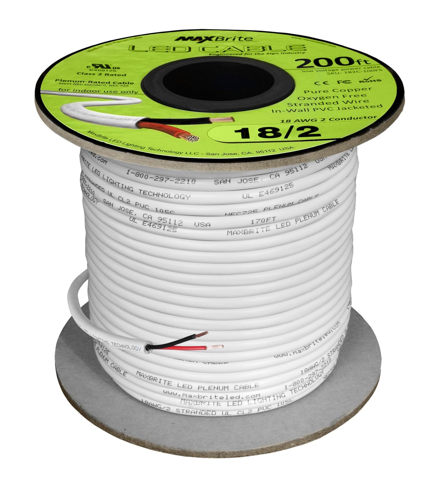 Maxbrite Premium Quality 18 Gauge, Oxygen Free, Copper Stranded Conductors For Led, And Low Voltage Wiring Ul Class 2 Certified, In-Wall Jacketed, Low Voltage Power Cable, Designed Specially For The Professional Applications Product Features: &Nbsp;&Nbsp; 18 Awg, 2 Conductor, 16 Stranded Wires Per Channel &Nbsp;&Nbsp; 99.99% Oxygen Free Copper Conductors &Nbsp;&Nbsp; Flexible White Pvc Jacket With Sequentially Mark Every Two Feet In Descending Order From The Start Of The Reel To The Core &Nbsp;&Nbsp; Spooled For Easy Dispensing And Storage &Nbsp;&Nbsp; Wire Can Be Used For Low Voltage Led Projects, Security Systems, Audio Connections, Etc. &Nbsp;&Nbsp; Ul Safety Certified &Nbsp;&Nbsp; Nec 725 Class 2 Rated For Home And Commercial Use Packaged:&Nbsp; 200 Ft. Spool Amazon Protected Money-Back Satisfaction Guaranteed