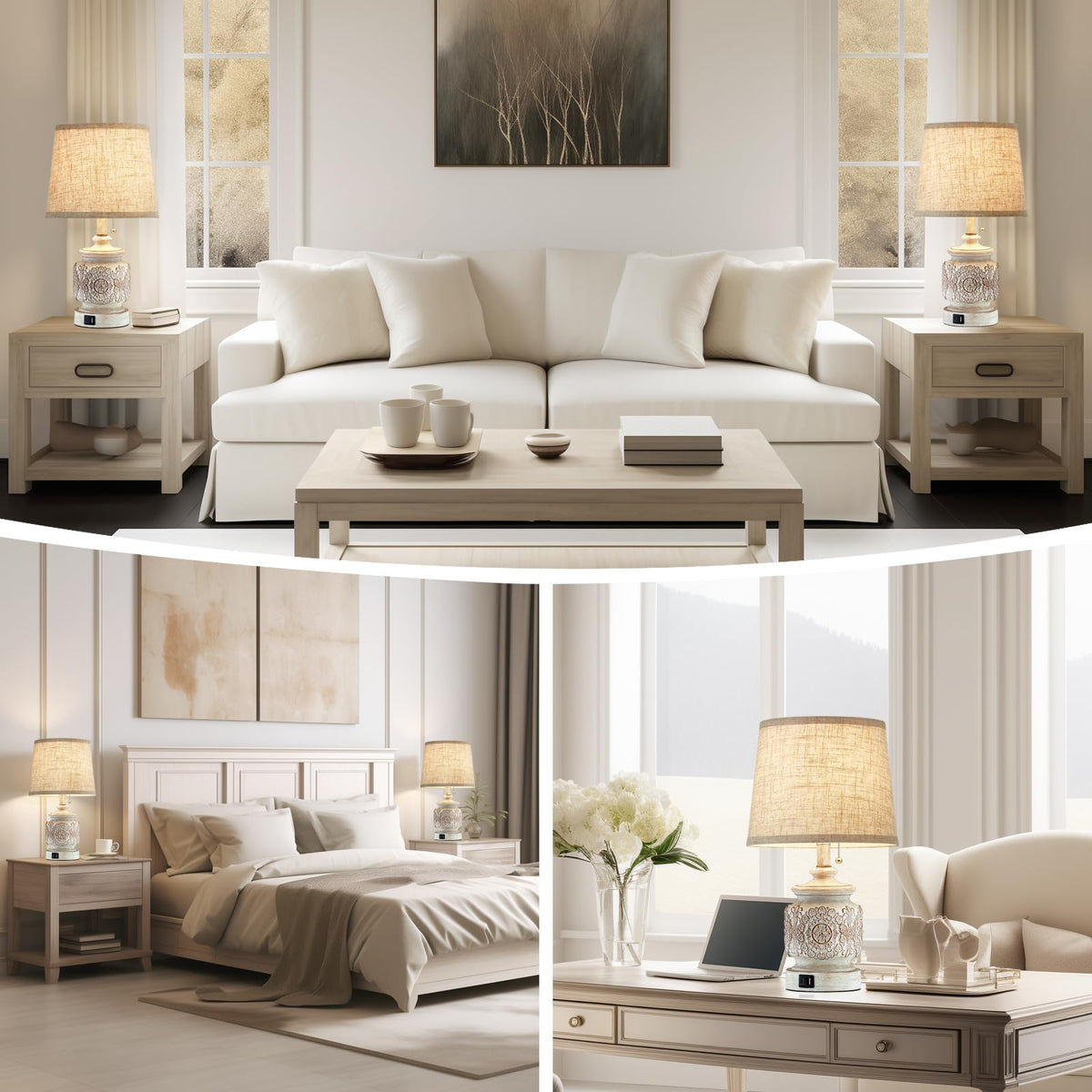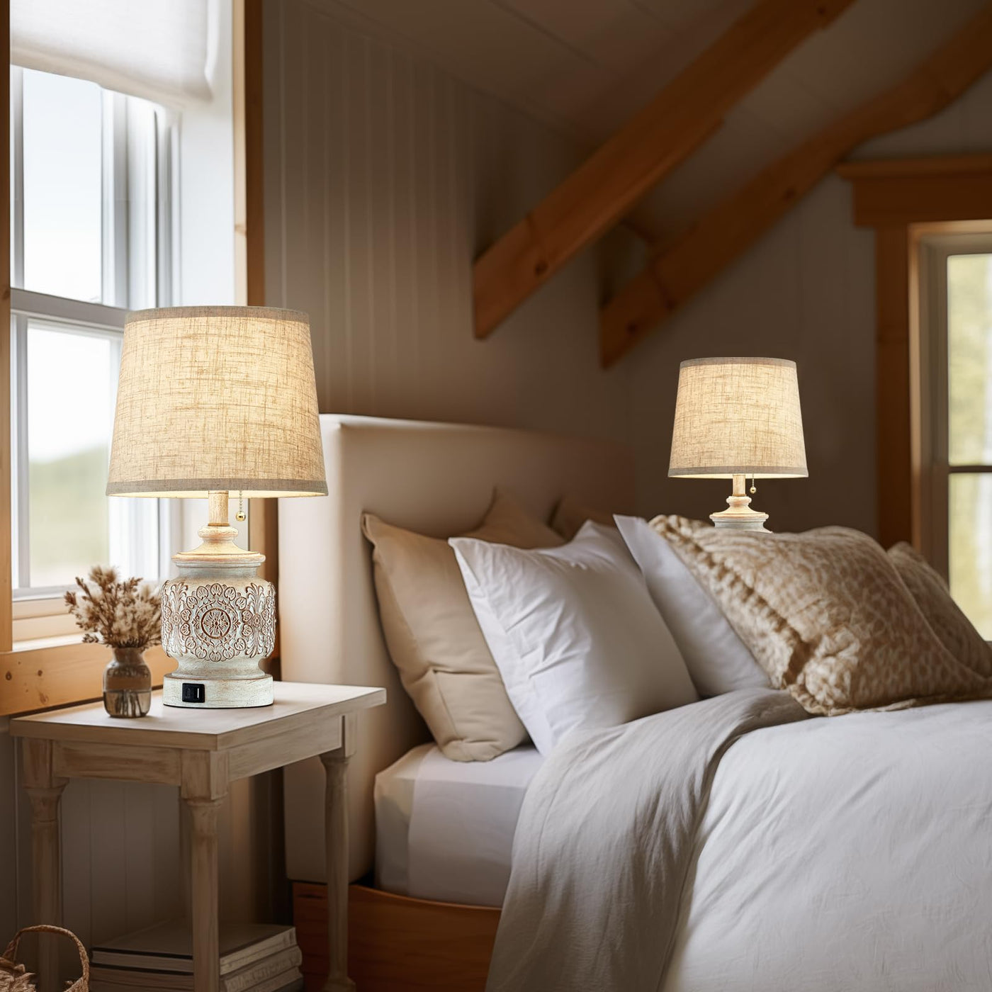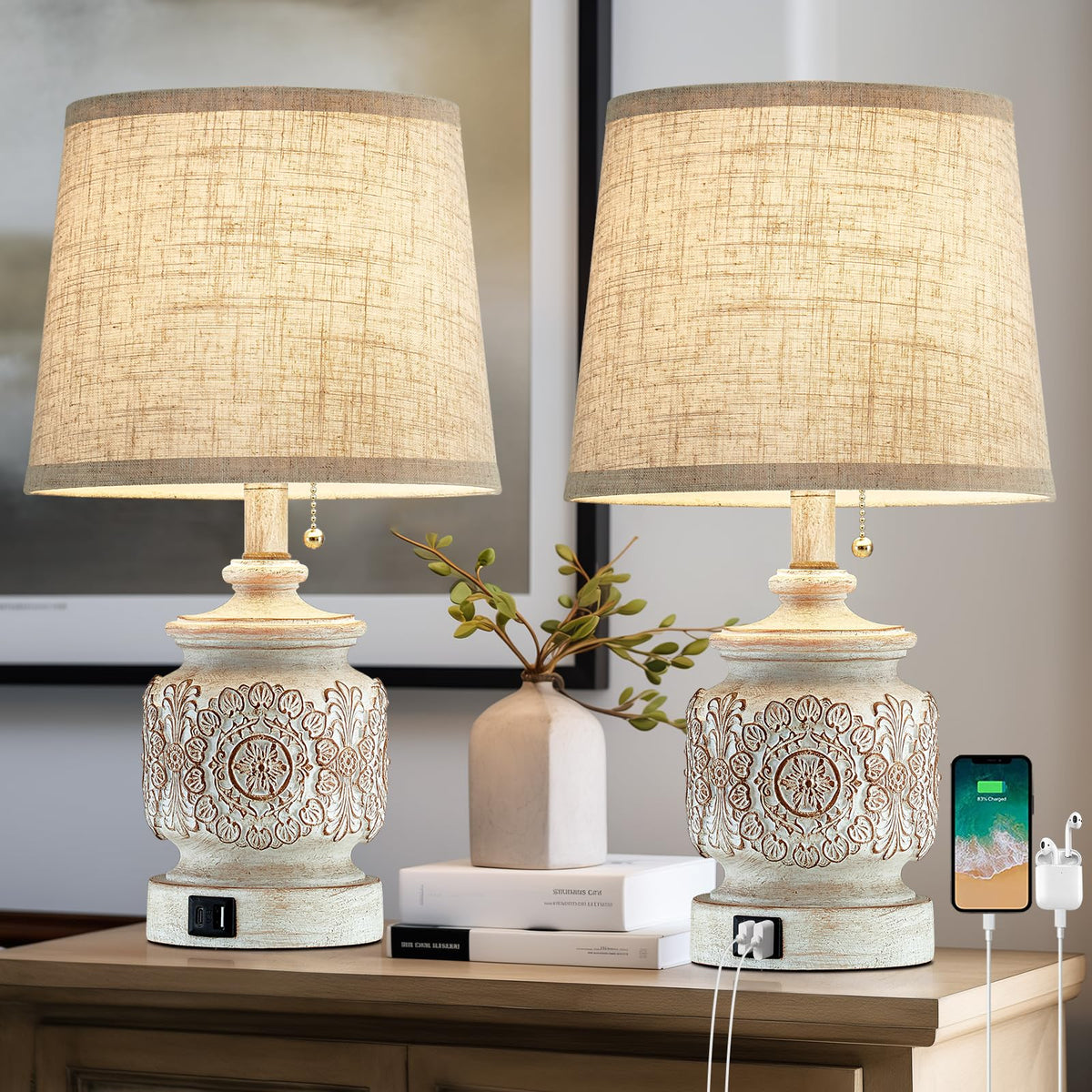 19.5'' Farmhouse Vintage Table Lamps For Living Room Set Of 2 Traditional Rustic Bedside Lamps For Bedrooms Nightstand With Usb