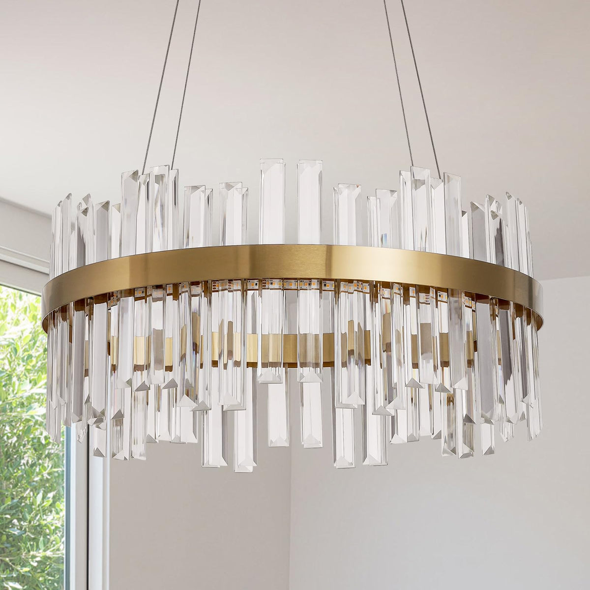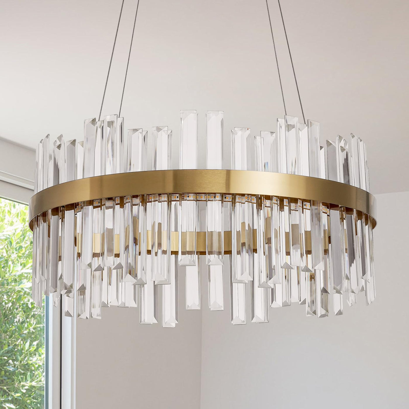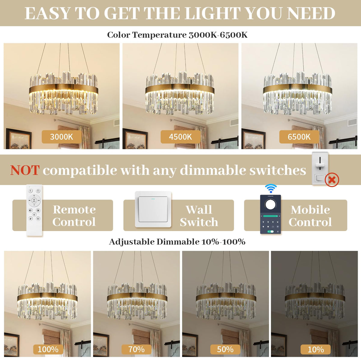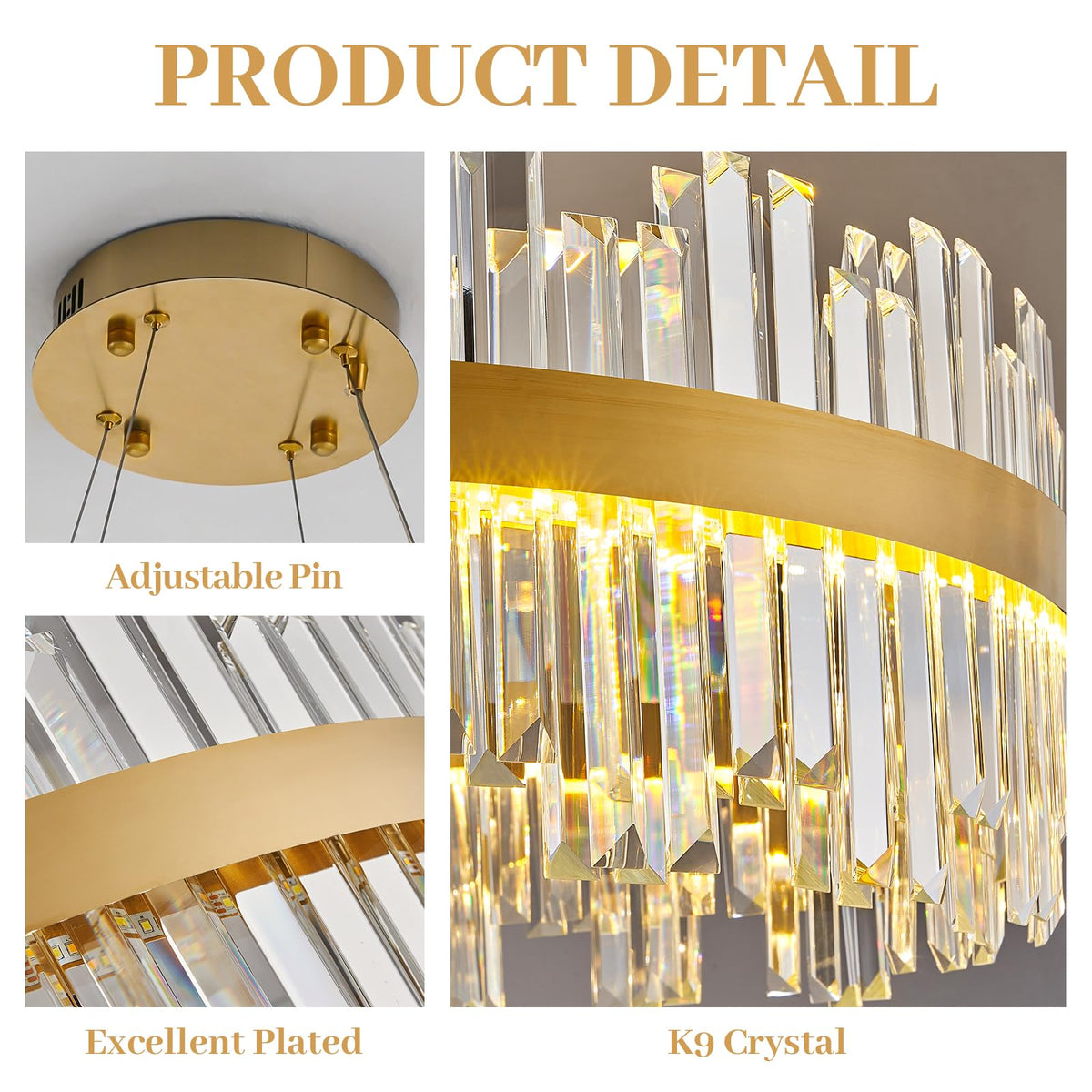 Dimmable Modern Led Crystal Chandeliers,Gold Chandelier Light Fixture, 3 Colors Contemporary Pendant Ceiling Light For Dining Room Living Room Kitchen Island Entryway Foyer ,With Remote Control