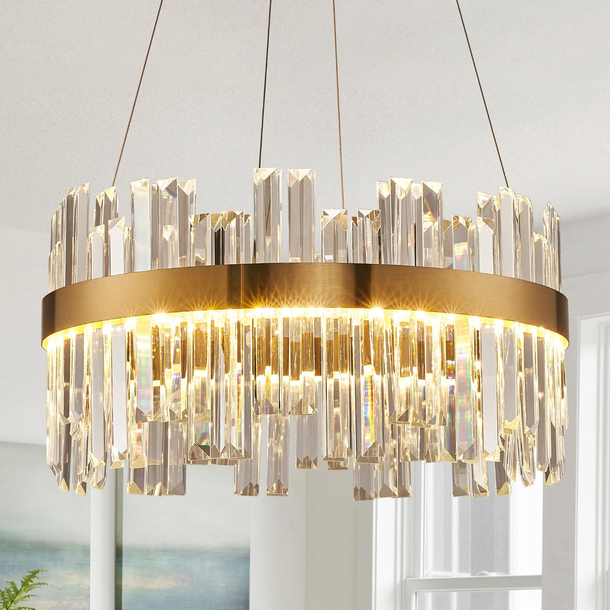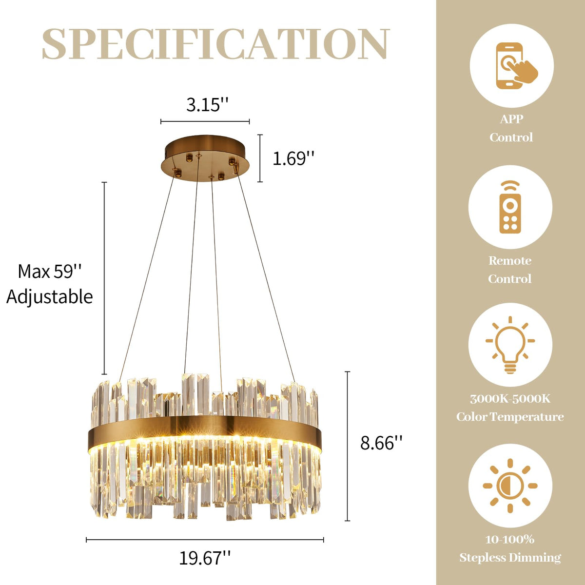 19.7'' Dimmable Modern Led Crystal Chandeliers,Gold Chandelier Light Fixture, 3 Colors Contemporary Pendant Ceiling Light For Di