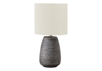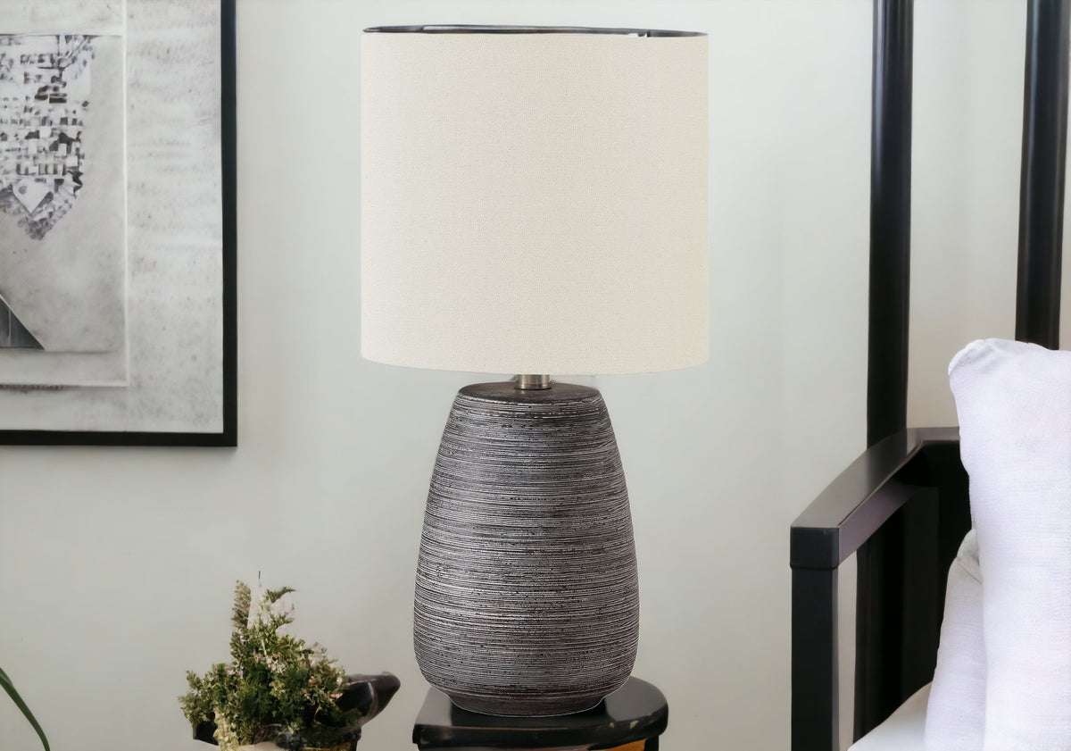 19'' Gray Ceramic Round Table Lamp With Ivory Drum Shade