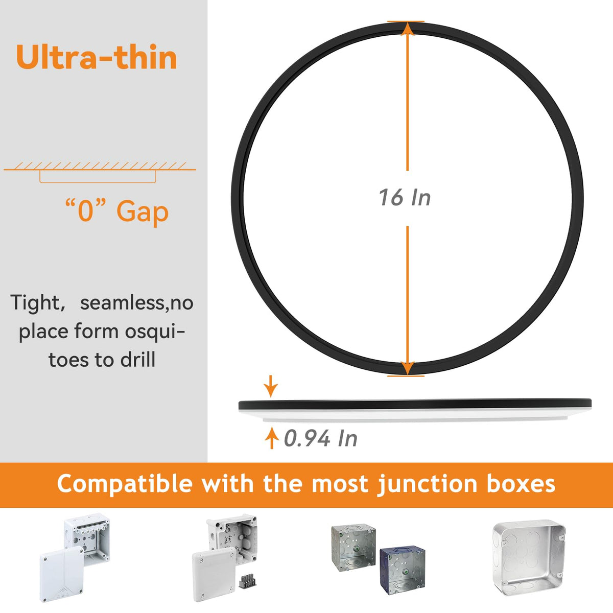 1Pack Led Flush Mount Ceiling Light Fixture, 3000K-4500K-6000K & 150W Equivalent Modern Kitchen Ceiling Lamp 36W 3600Lm 16 Inch