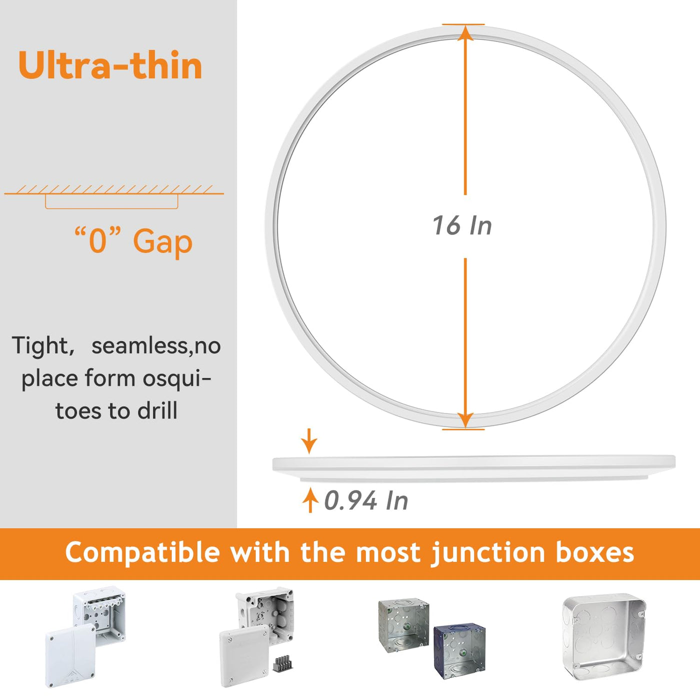 'Equipped With 100 Powerful Leds, Using High Quality Of Fire-Resistance Plastic, Slochi Led Ceiling Light Can Provide A Super Bright Illuminance For A Wide Area.If You Want To Make Your Home Life More Stylish And Brighter, Hepside Low Profile Ceiling Light Can Provide You With The Answer... Slochi Stylish Led Ceiling Light With Ultra-Thin Design Is Multi-Functional And Energy Saving. Gentle Night Light Modes To Help Those Who Have Sleep Anxiety To Sleep More Peacefully At Night. A High-Quality Fire-Resistant Plastic Enclosure Protects Against Any Potential Disaster. 3 Optional Color Temperatures To Meet Your Daily Needs. High-Performance Design Saves Up To 90% Of Your Home Electricity Bill. High Cri >85, Provide Vivid And Natural Lighting In Your Room. Easy To Install + Super Bright + Eye Protection Specifications: Voltage: Ac100-120V Power: 36W (Equal 100W Incandescent) Lumen: 3600Lm Cri: >85 Light Beam Angle: 120? Lifespan: 25000 Hours Material: Pc Product Diameter/Thickness:16*0.94Inch Waterproof & Dustproof: Yes Packing Lists: 1 X 36W Led Ceiling Light 1 Xconnector 3 X Screws 1 X User Manual Color Adjustable The Color Modes Between: 3000K-4500K-6000K Warm Tips For Led Ceiling Lights : Please Confirm The Relevant Parameter Before Purchase To Ensure The Lamp Is Suitable For You. Make Sure To Cut Off The Power Source Before Installation. Clean With A Slightly Wet And Soft Cloth. Please Do Not Use Any Cleaning Or Abrasive Solutions.''