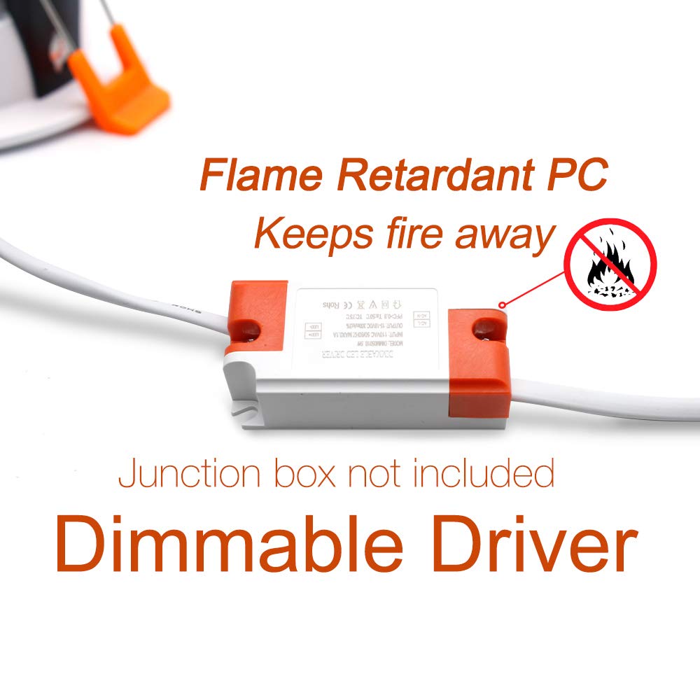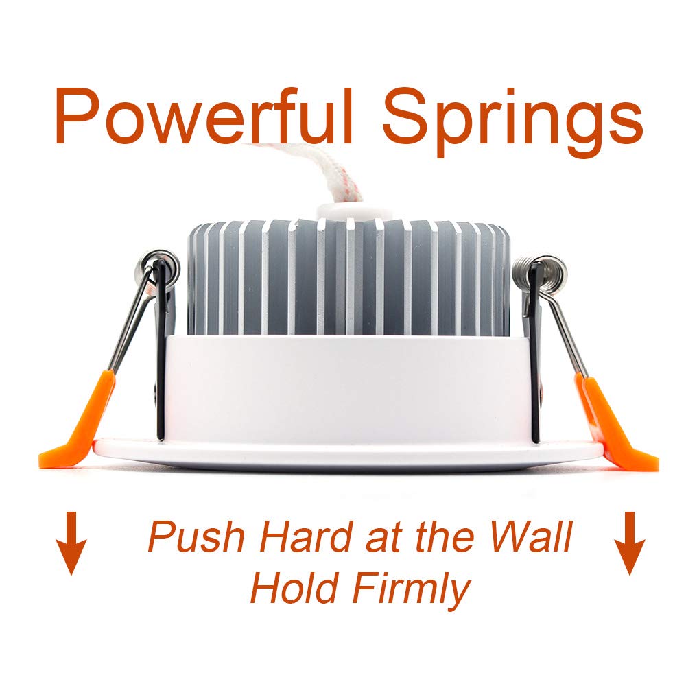 The most durable and economical recessed lights are now available! Want some safe stuff for lighting? Here is the answer! The lovely dimmable downlight is made of aluminum and flame retardant PC. Aluminum wont fire as we both know, but it isnt the most important thing. Which matters? The Flame Retardant PC does! It wont burn even if there is on fire, it will only melt like ice-cream! Provides the best safety it could! Why are you still waiting for? Its time to get it home! Find some easy way to install recessed lights? Then you couldnt miss the down light. It has a powerful mechanical spring which make the installation more easier! NO EXTRA recessed housing cans or accessories ARE REQUIRED! Throw away your old bulb and start using this incredible bulb! Want a durable and economical bulb? Might be the best choice! The dimmable recessed down light could save 85% energy of lighting and it will last for 40000 hours! Come and get it now! Specifications: Power: 5W Input Voltage: 110V Emitting Color: 6000K(Daylight White) Dimmable: Yes Light Source: LED Material Type: Aluminum + Flame Retardant PC Quantity: 4 pack Front Diameter:86mm/3.39inch Cutout Opening Diamerter:65mm/2.56 inch Height:42mm/1.65 inch Height:45mm/1.77inch Application Areas: Closets, attics, hallways, bathrooms, kitchens, basements, soffits, entry ways, porches, garage stairwells, corridors, nursing/retirement homes, condos, elevators, apartments, and any other small areas.