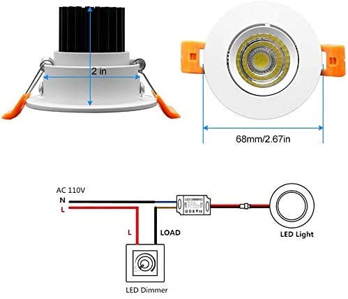 Features: No Ultraviolet Rays, Infrared Radiation And Heat Radiation. This Downlight Bulb Is Advanced Lighting Goods With Energy-Efficient,Aesthetic And Anti Glare. With Perfect Color And Soft Lighting Specification: Power: 3W Input Voltage: 110V-130V Ac Emitting Color: 5000K Daylight White Light Source: Led Dimmable: Dimmable Brightness: 250Lm Cri: 80+ Front Diameter: 70Mm/2.75Inch Cutout Opening Diamerter: 53Mm/2.08 Inch Package Includes: 1 * 3W Dimmable Led Ceiling Lights