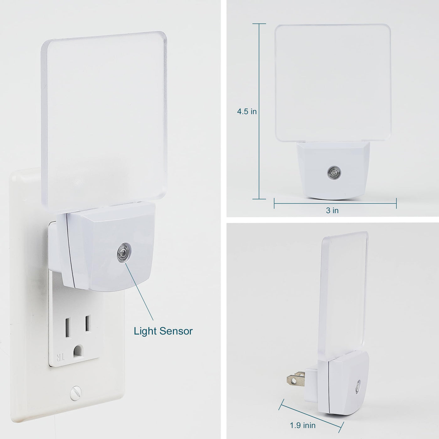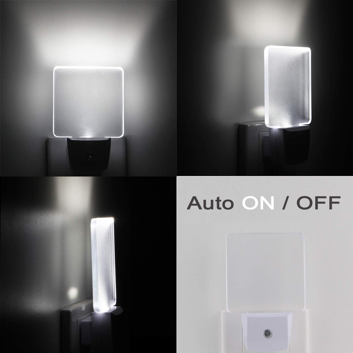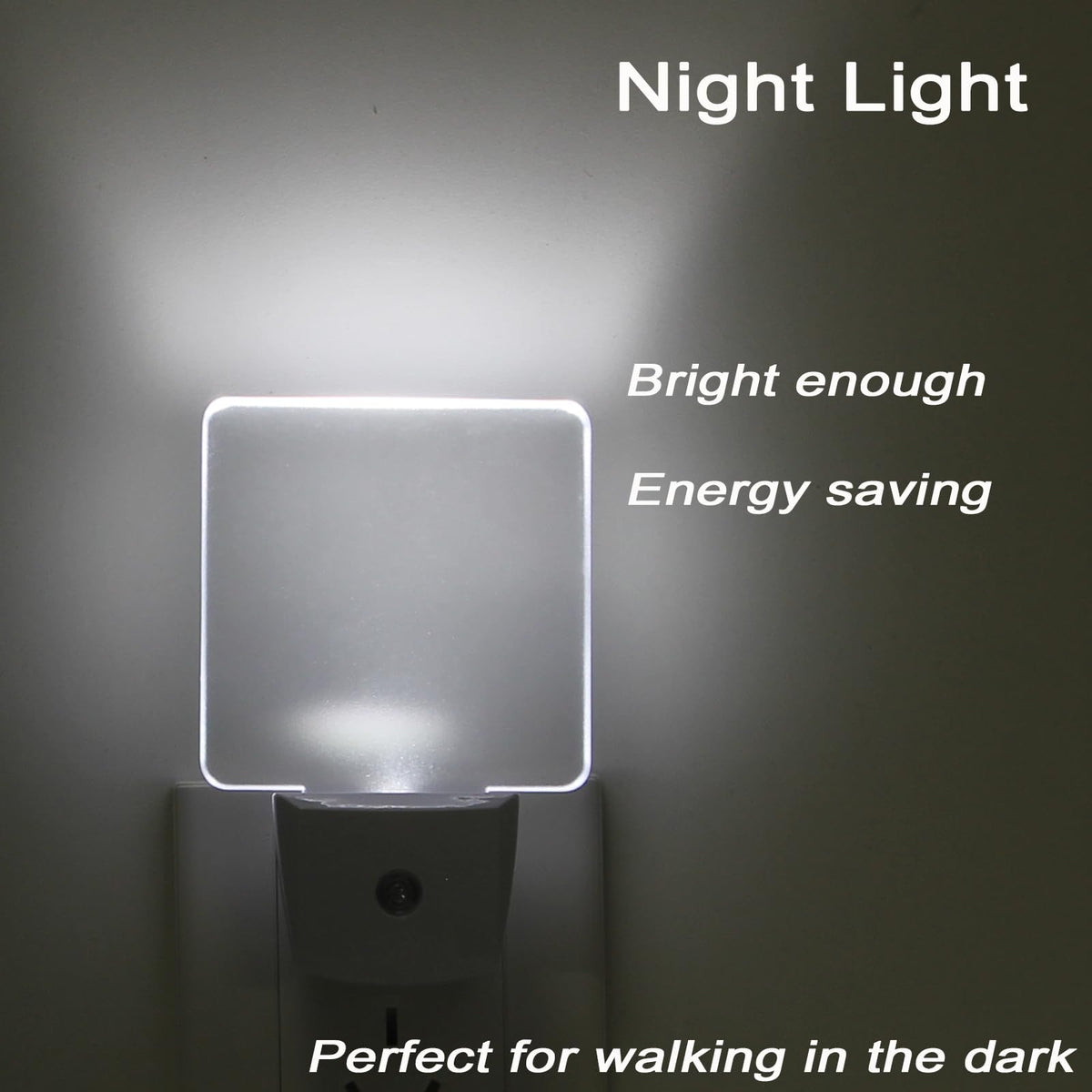 Greenic auto sensor colored LED night light 2 pack, features on the square diffusing panel, smart sensor auto on off, and multiple color choices to meet your needs. Color options: There are red, blue, green, yellow/amber/warm white, cool white/daylight white night lights. Wide usage For red night light/yellow light night light(3000K color temperature), it is perfect for bedroom, kids room, baby nursery. For white night light(6500K), it is great for hallway, porch, garage, which automatically turns off when day breaks. For green night light/blue night light, you can put it in the kitchen, hallway or bathroom, great for lighting up as well as decorative lights. Dusk to dawn sensor These nightlight are light sensitive with built-in photocell sensor, which automatically turns on at night and off at dawn. Modern LookingThey are also modern looking, slim&sleek design. Compact design Compact night light with 2 US flat pin plug. When plugged into the upper outlet on the socket, it wont block the second outlet for hair dryer. Which you can put it in the bathroom. Sleep-friendly It is low light night light, giving off perfect amount of light for night trips yet not too bright. They put out soft calming glow, which is great for kids room, nursery room and adults bedroom as well. Save energy and money: These led night light are eco-friendly, low electricity consumption, no bulb replacement needed, only 2 cents for year. Specification:Sensor type: light sensor/dusk to dawn sensor Input Voltage:AC 110V Power consumption:0.2W Item dimension:3x1.9x4.5 Package dimension: 4.7x1.9x4.7Light color: white Power consumption 6500K Package includes:2 pcs nightlight