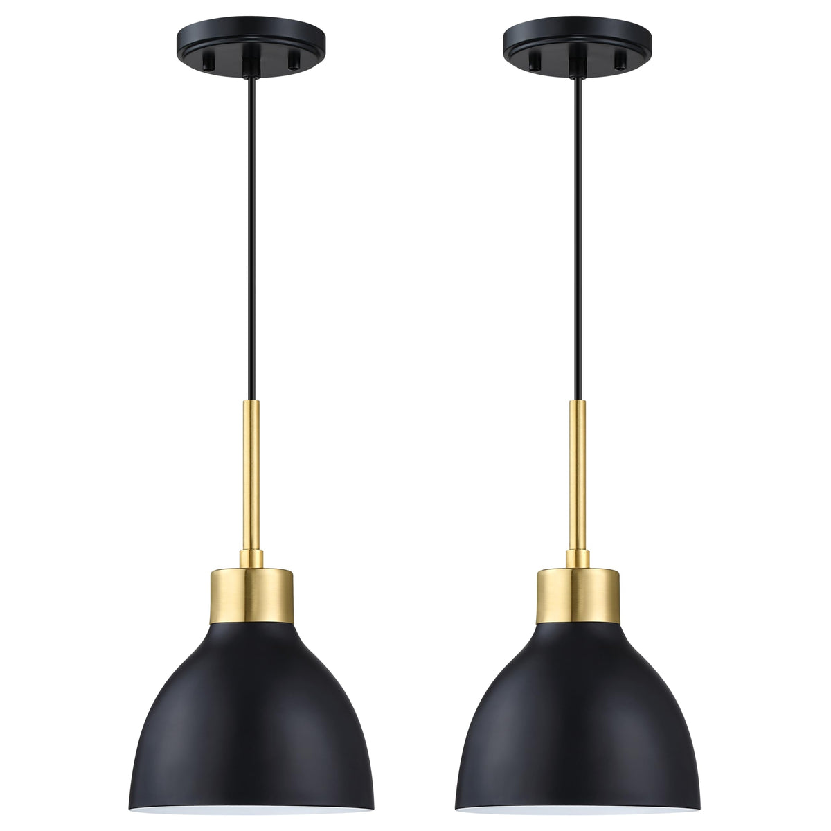2 Pack 1 Light Kitchen Island Mini Hanging 6.5'' Metal Drum Pendant Ceiling Light Industrial Fixtures,Black Gold Finish For Over