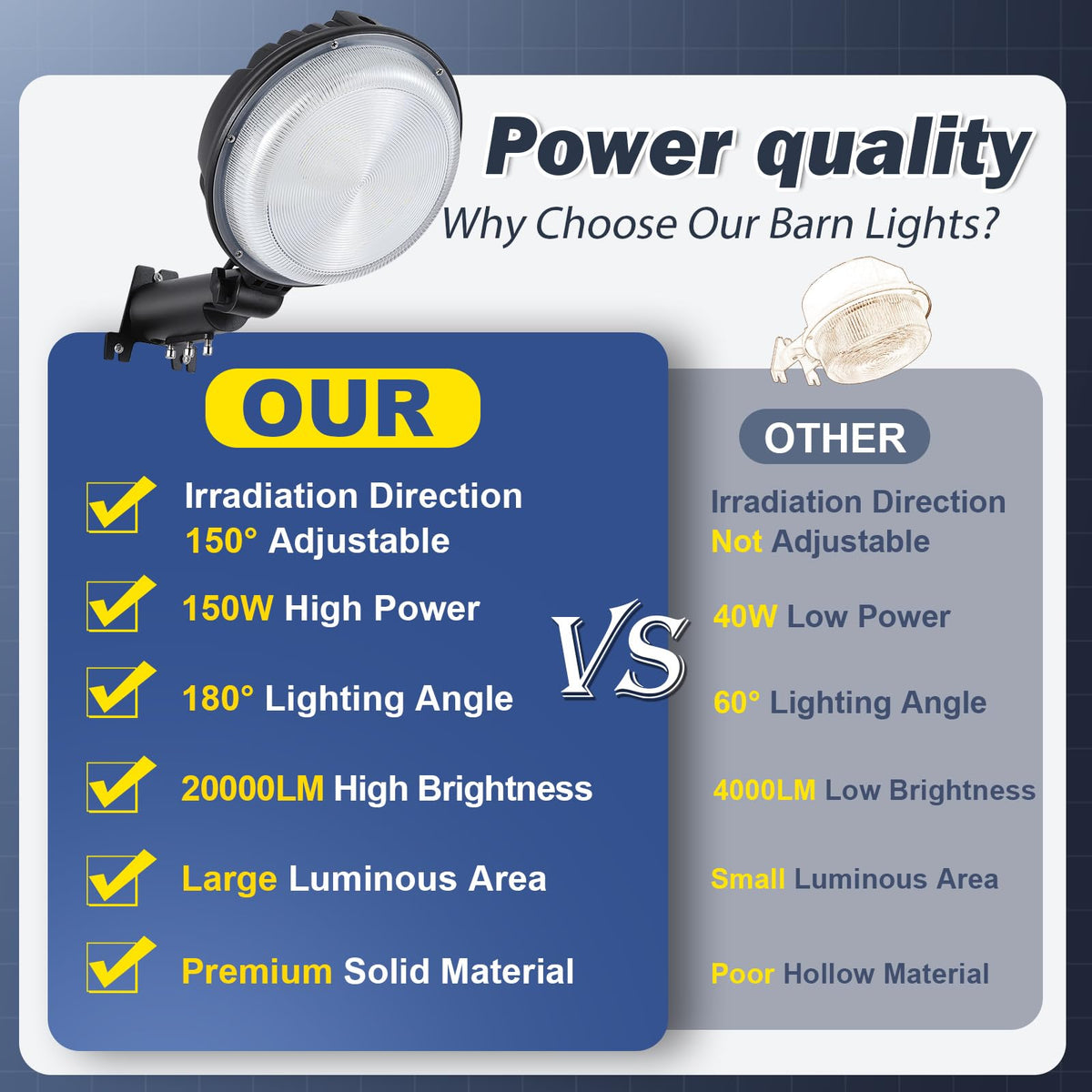 Q: Is the 150W LED Barn Light suitable for outdoor use?A: Yes, the 150W LED Barn Light is designed for outdoor use with an IP66 waterproof rating, making it resistant to rain, snow, and other harsh weather conditions.