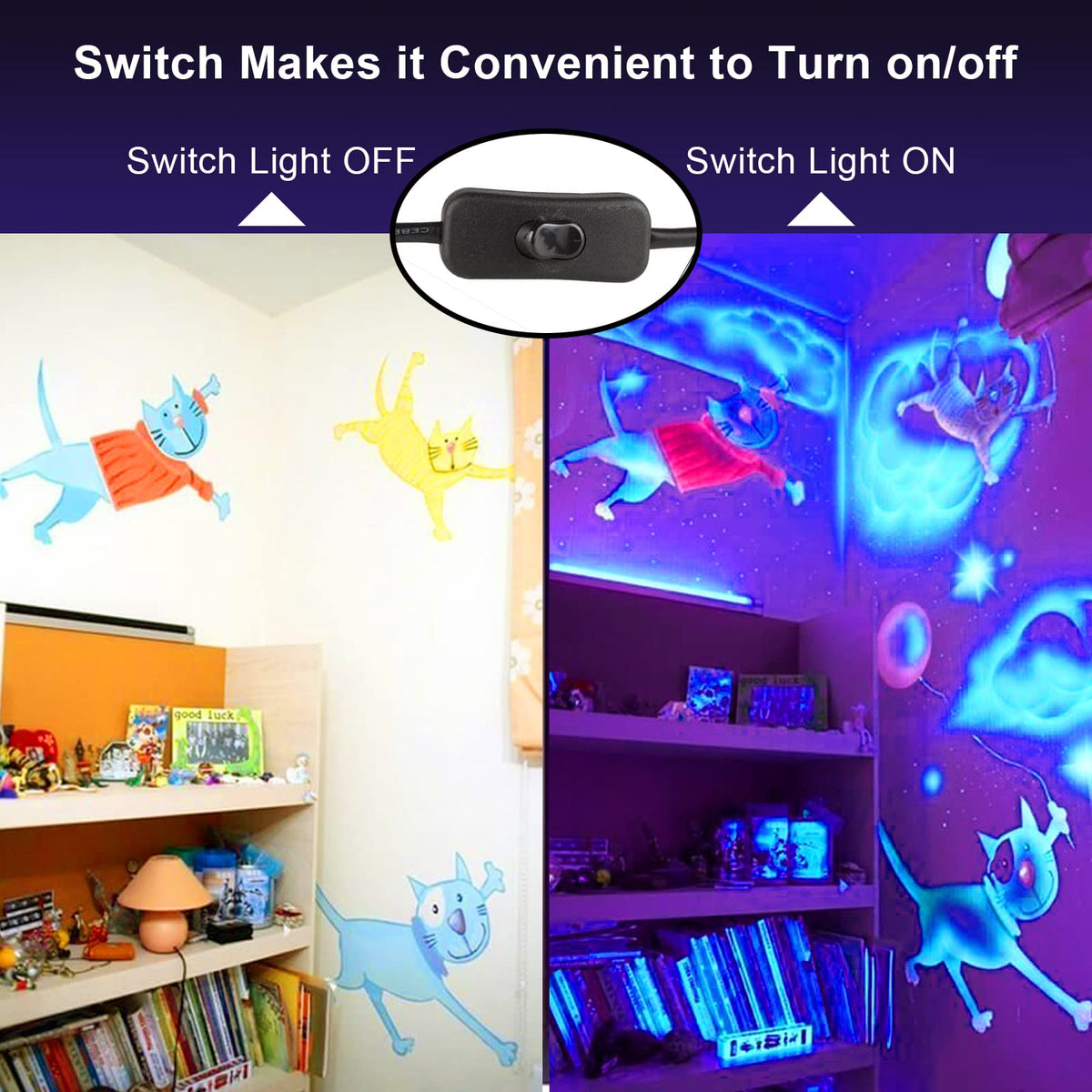 Q: What types of parties are suitable for using this Blacklight?A: This Blacklight is perfect for glow parties, birthday celebrations, neon parties, bars, clubs, stage shows, and Halloween events, as it makes white objects and neon colors illuminate brightly.